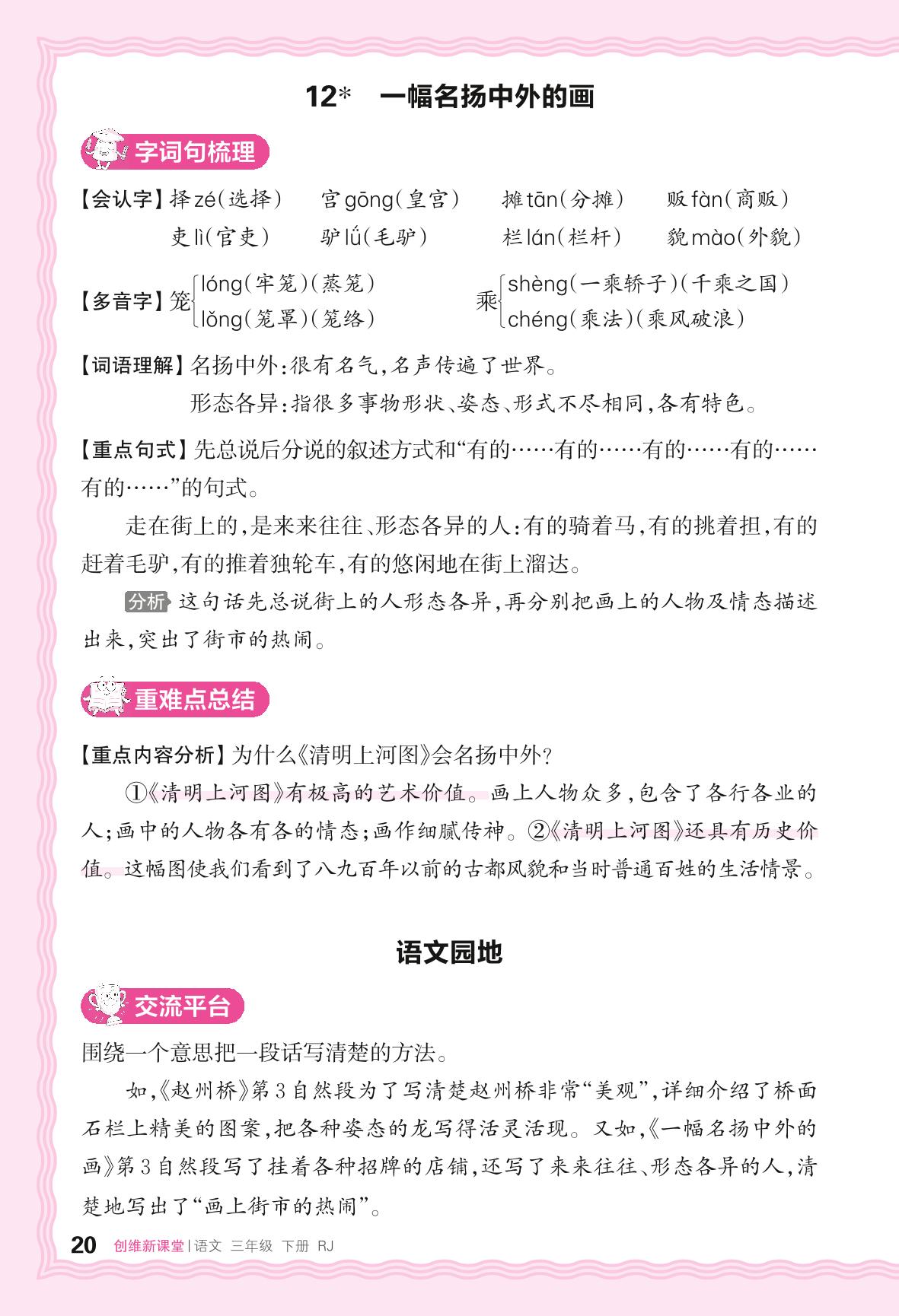 2024春下册三年级语文人教版 助学手册 第三单元——语文园地