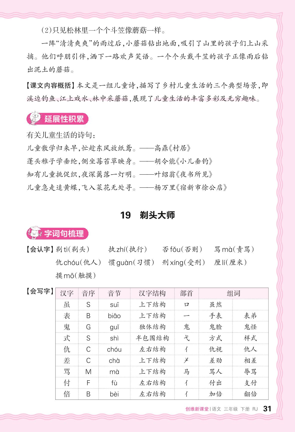 2024春下册三年级语文人教版 助学手册 第六单元——19. 剃头大师