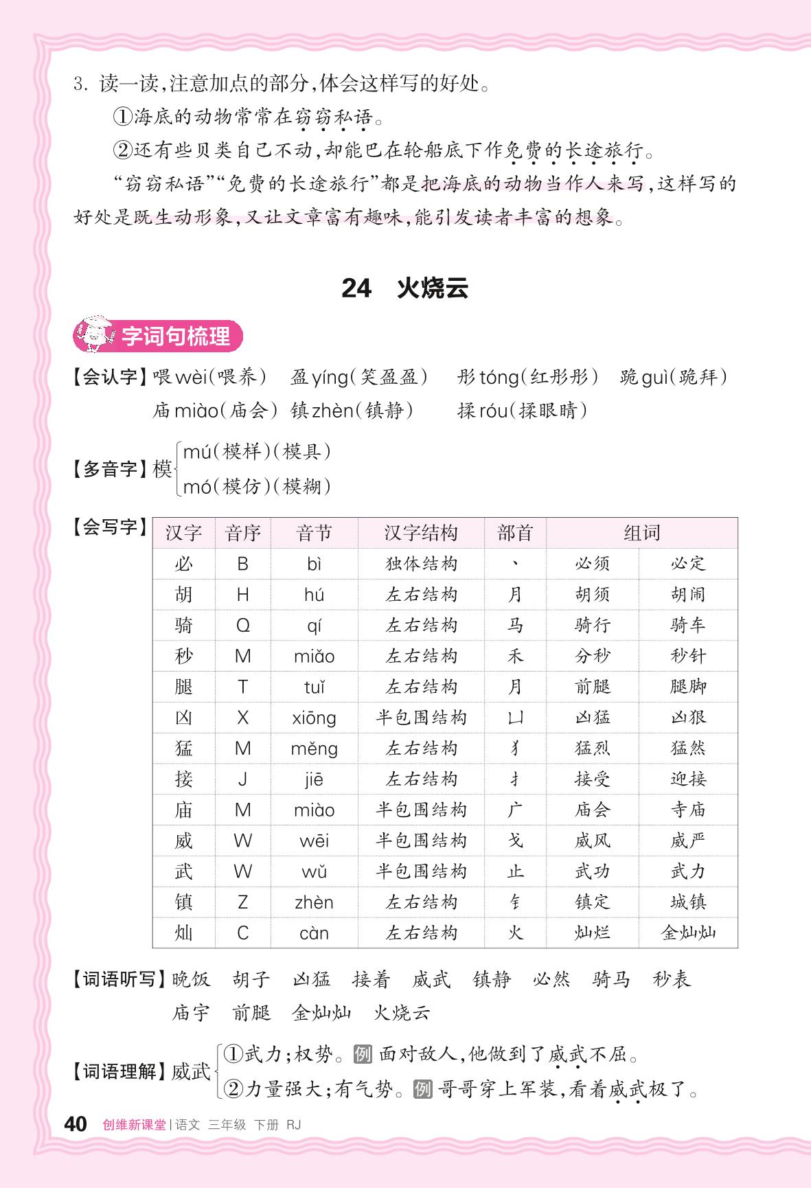 2024春下册三年级语文人教版 助学手册 第七单元——24. 火烧云
