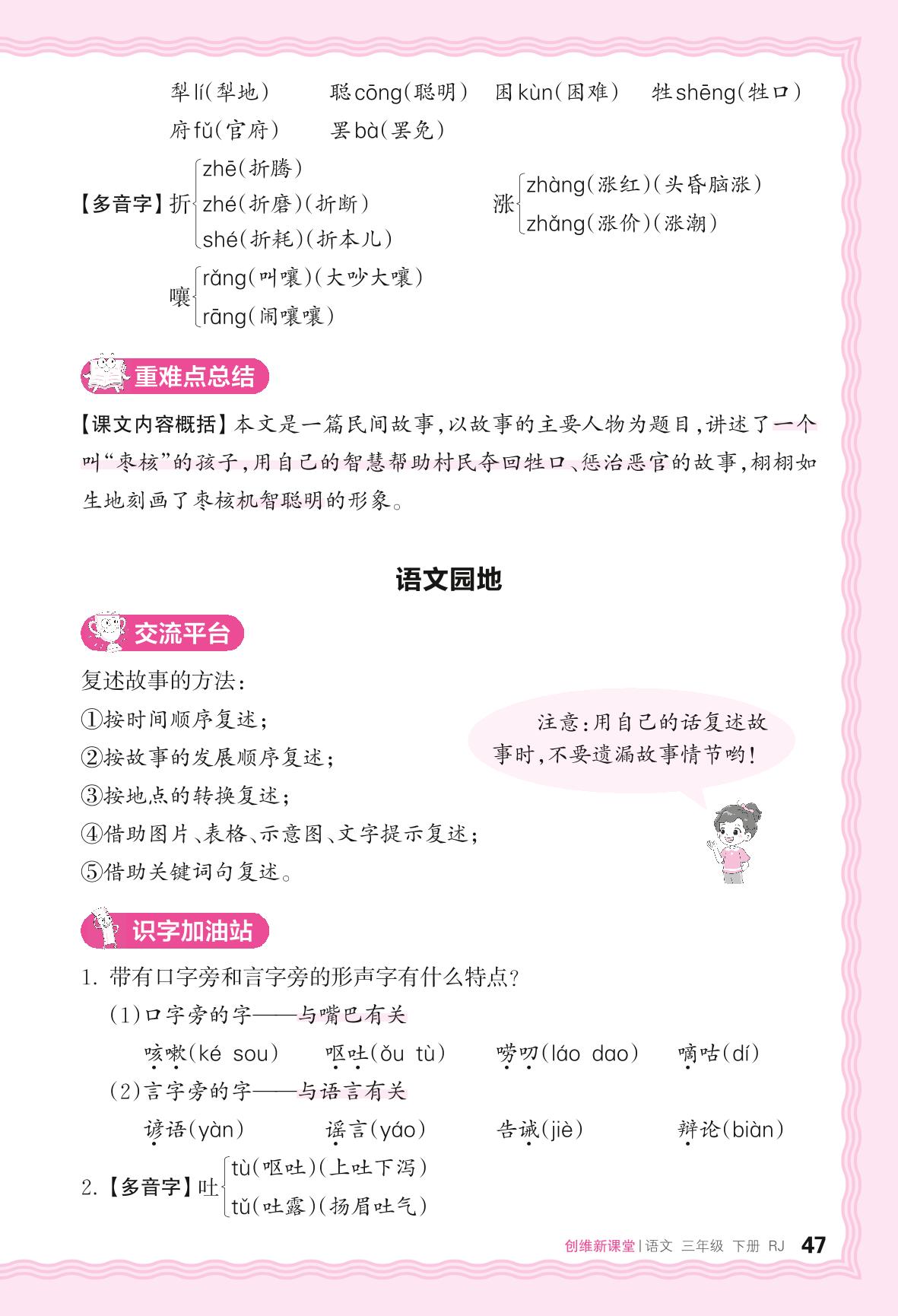 2024春下册三年级语文人教版 助学手册 第八单元——语文园地