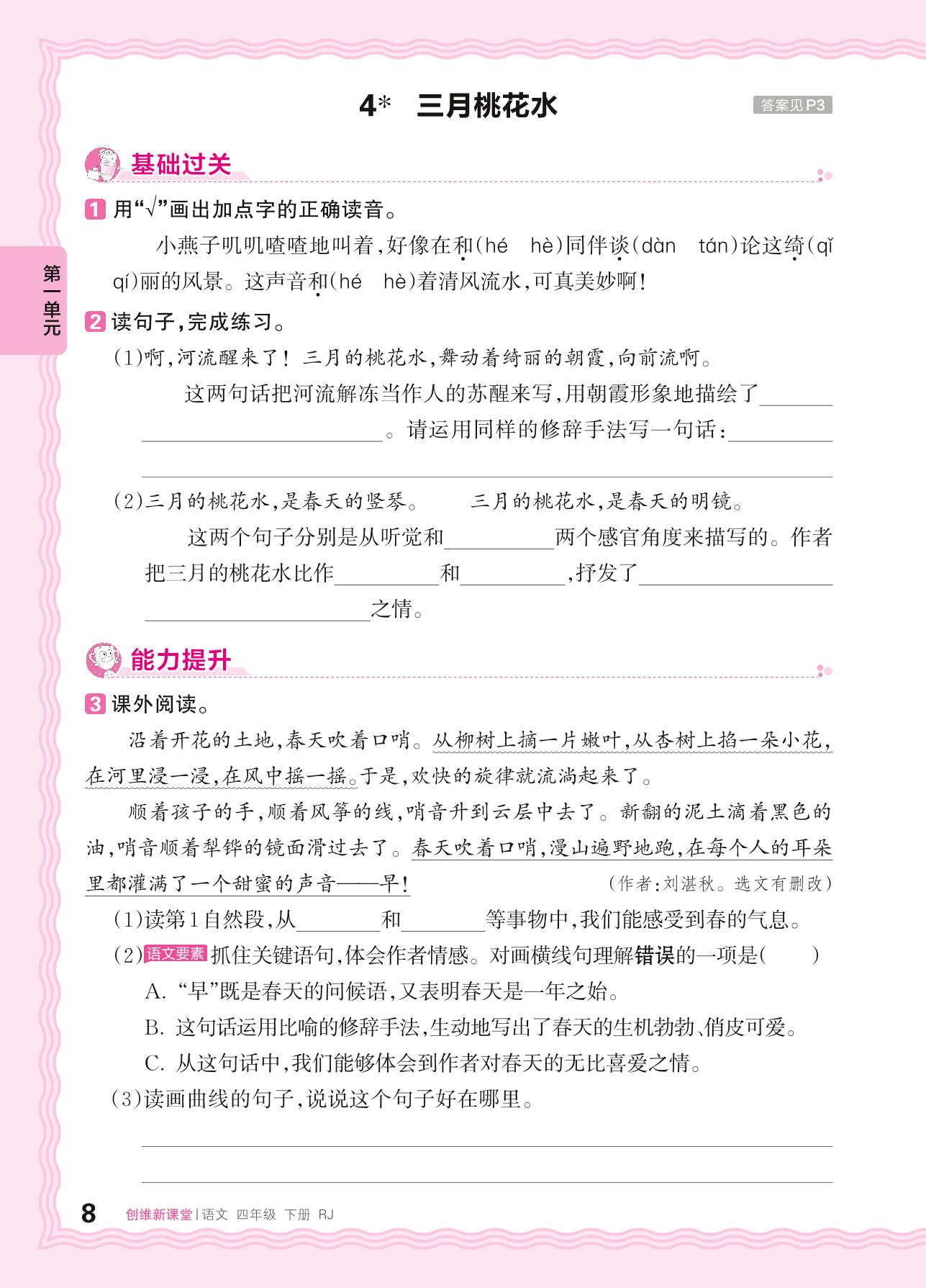 2024春下册四年级语文人教版 第一单元 乡村生活——4. 三月桃花水_R240119102528807