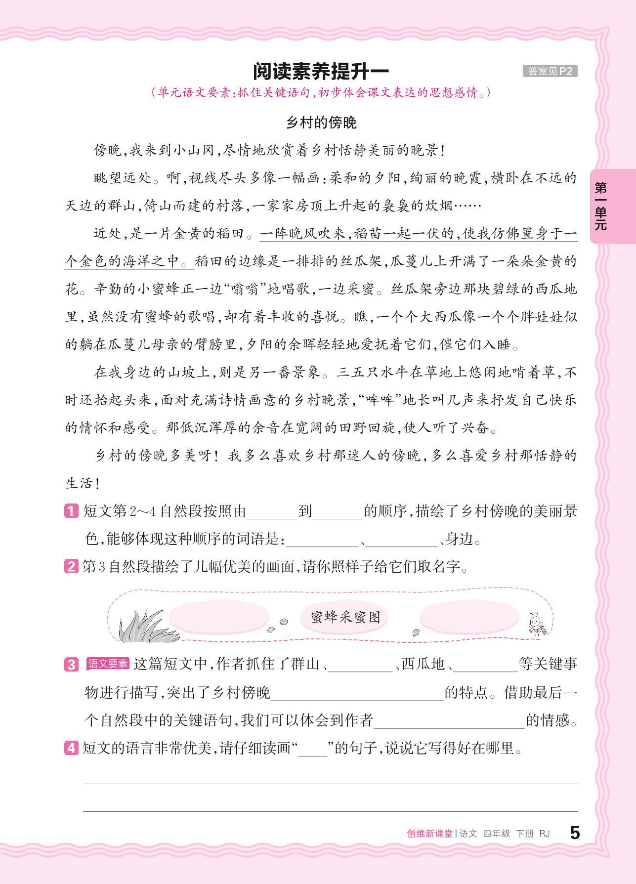 2024春下册四年级语文人教版 第一单元 乡村生活——阅读素养提升一