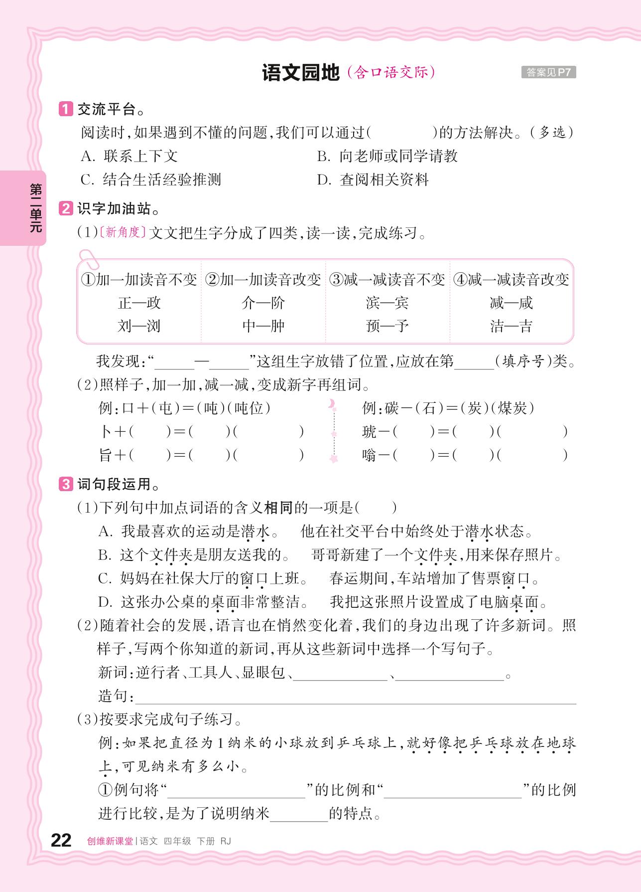2024春下册四年级语文人教版 第二单元 科普——语文园地(含口语交际)