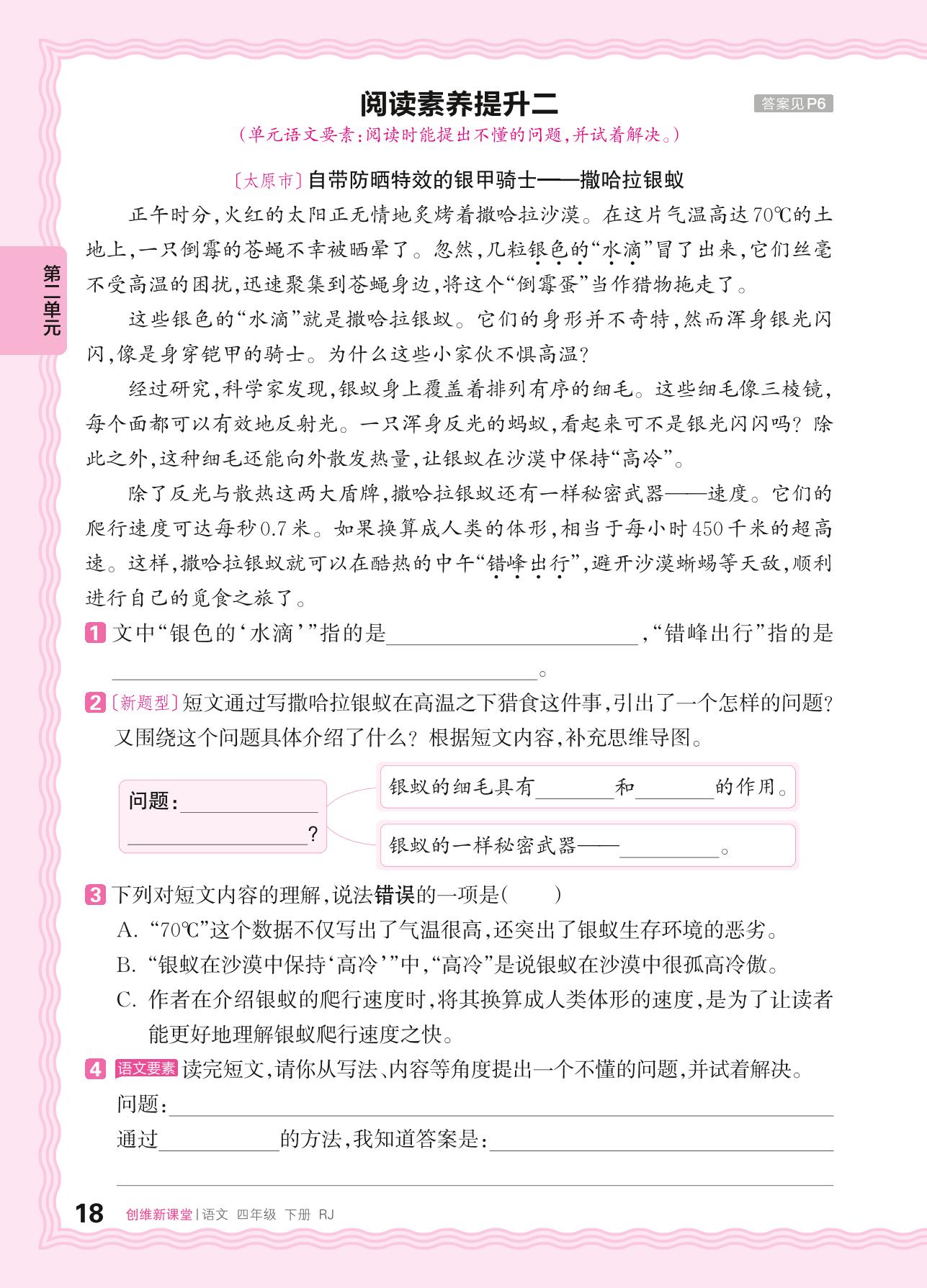 2024春下册四年级语文人教版 第二单元 科普——阅读素养提升二