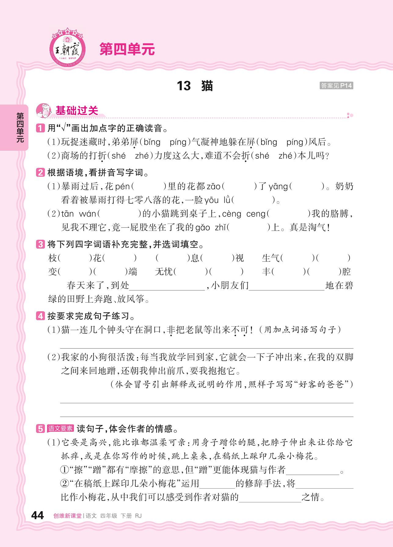 2024春下册四年级语文人教版 第四单元 作家笔下的动物——13. 猫_R240119102536944