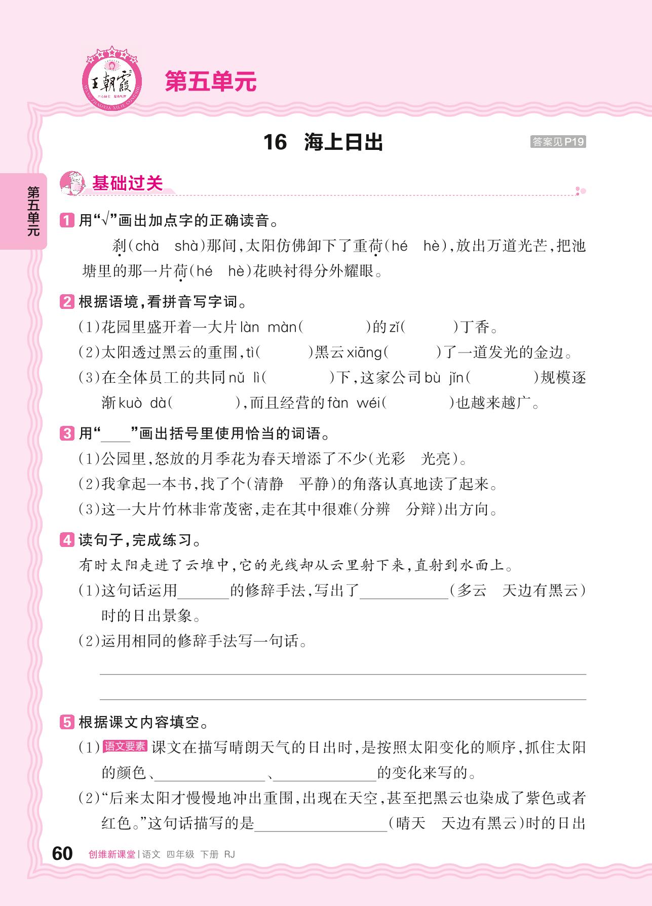 2024春下册四年级语文人教版 第五单元 按一定顺序写景物——16. 海上日出