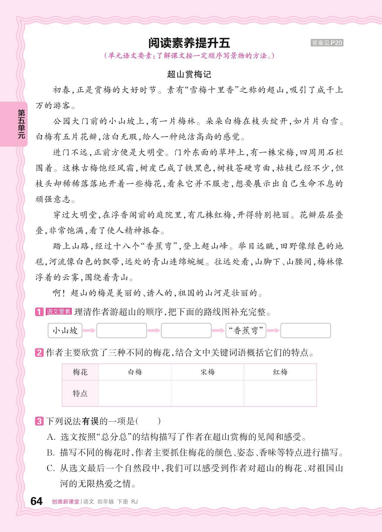 2024春下册四年级语文人教版 第五单元 按一定顺序写景物——阅读素养提升五