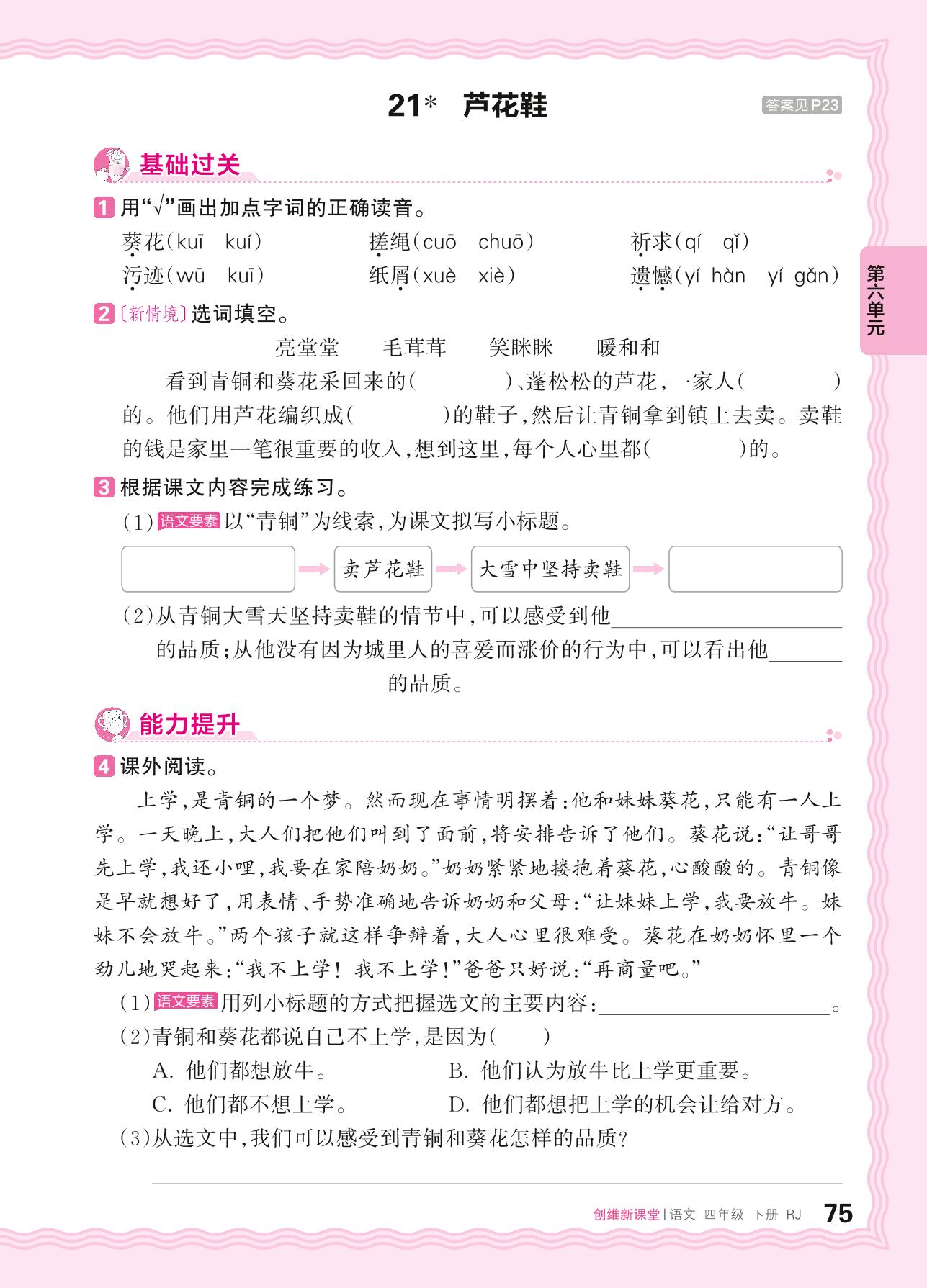2024春下册四年级语文人教版 第六单元 儿童成长——21. 芦花鞋