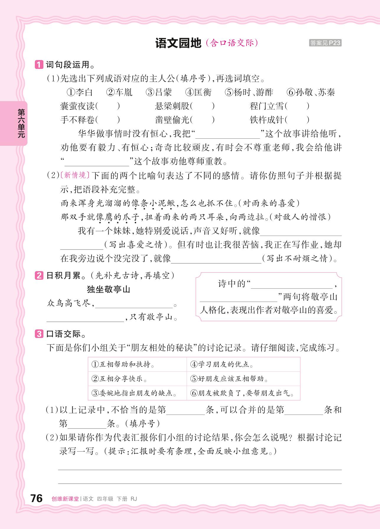 2024春下册四年级语文人教版 第六单元 儿童成长——语文园地(含口语交际)