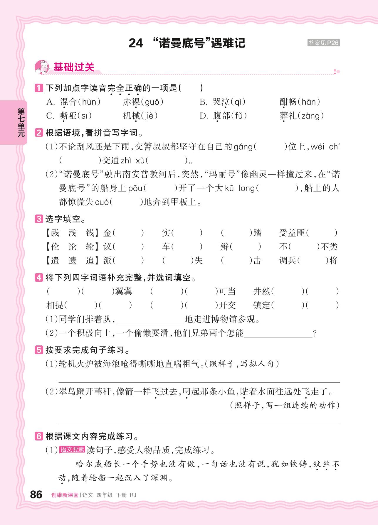 2024春下册四年级语文人教版 第七单元 人物品质——24. “诺曼底号”遇难记_R240119102545289