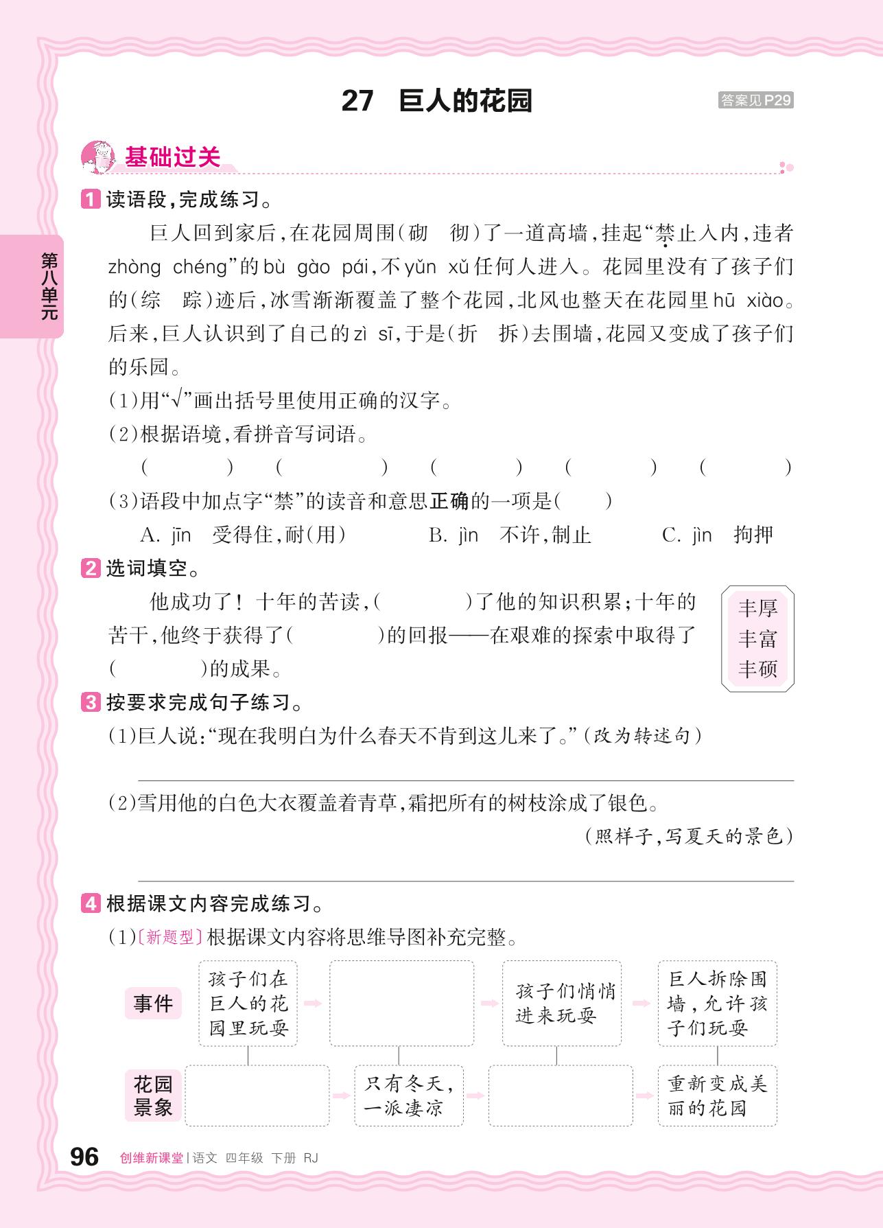 2024春下册四年级语文人教版 第八单元 中外经典童话——27. 巨人的花园_R240119102547650