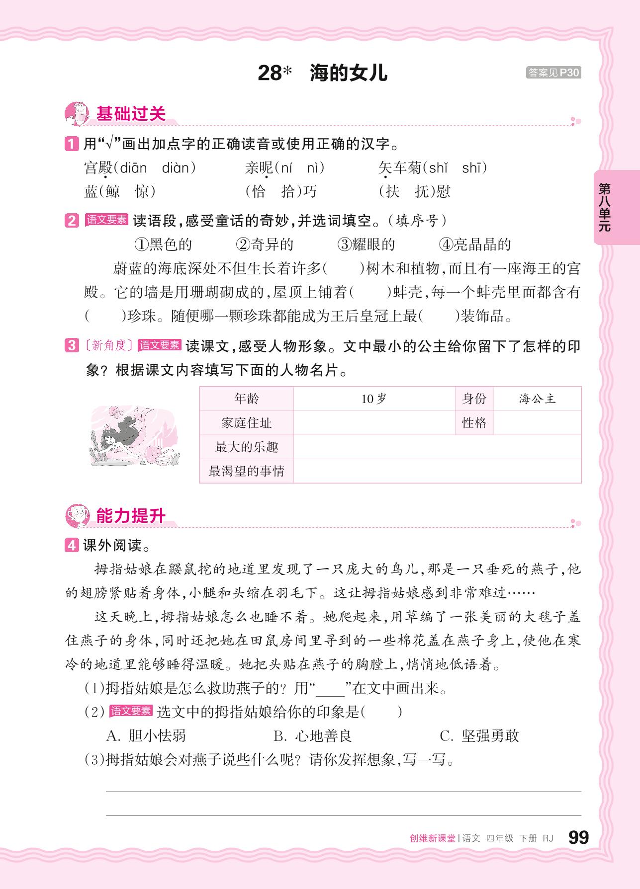 2024春下册四年级语文人教版 第八单元 中外经典童话——28. 海的女儿_R240119102548735