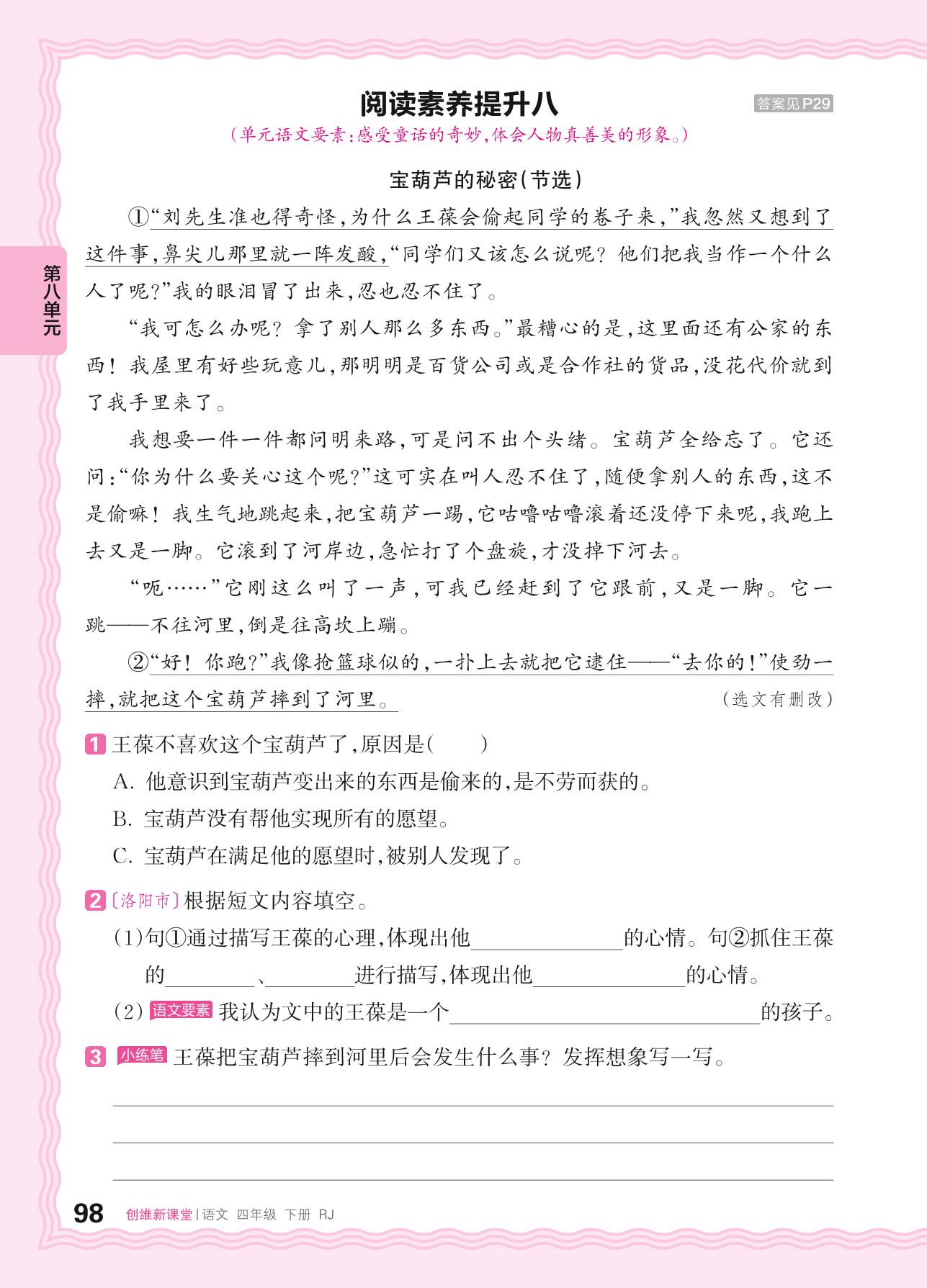 2024春下册四年级语文人教版 第八单元 中外经典童话——阅读素养提升八