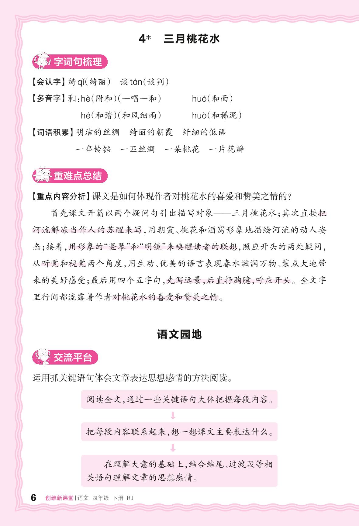 2024春下册四年级语文人教版 助学手册 第一单元——4. 三月桃花水