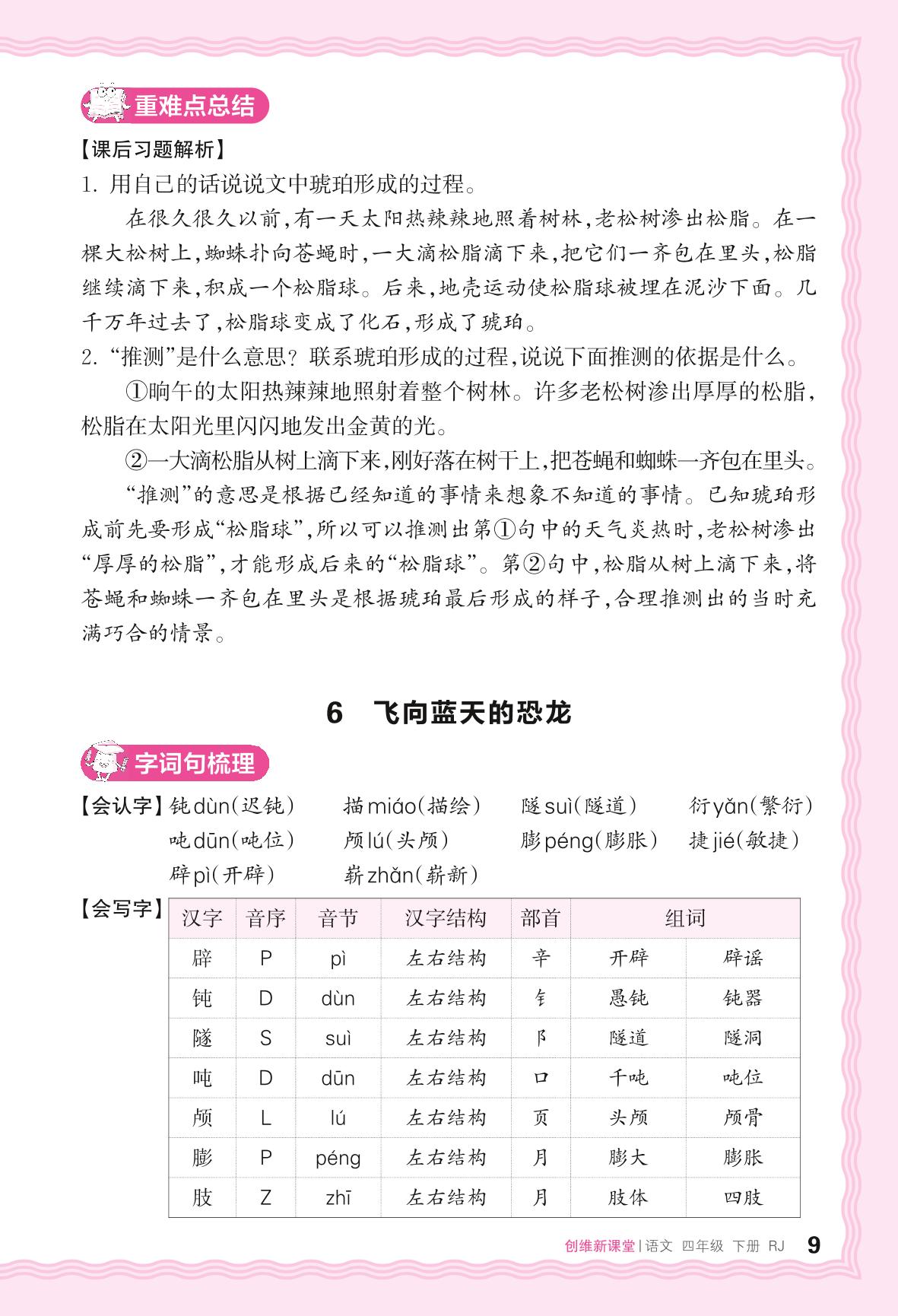 2024春下册四年级语文人教版 助学手册 第二单元——6. 飞向蓝天的恐龙
