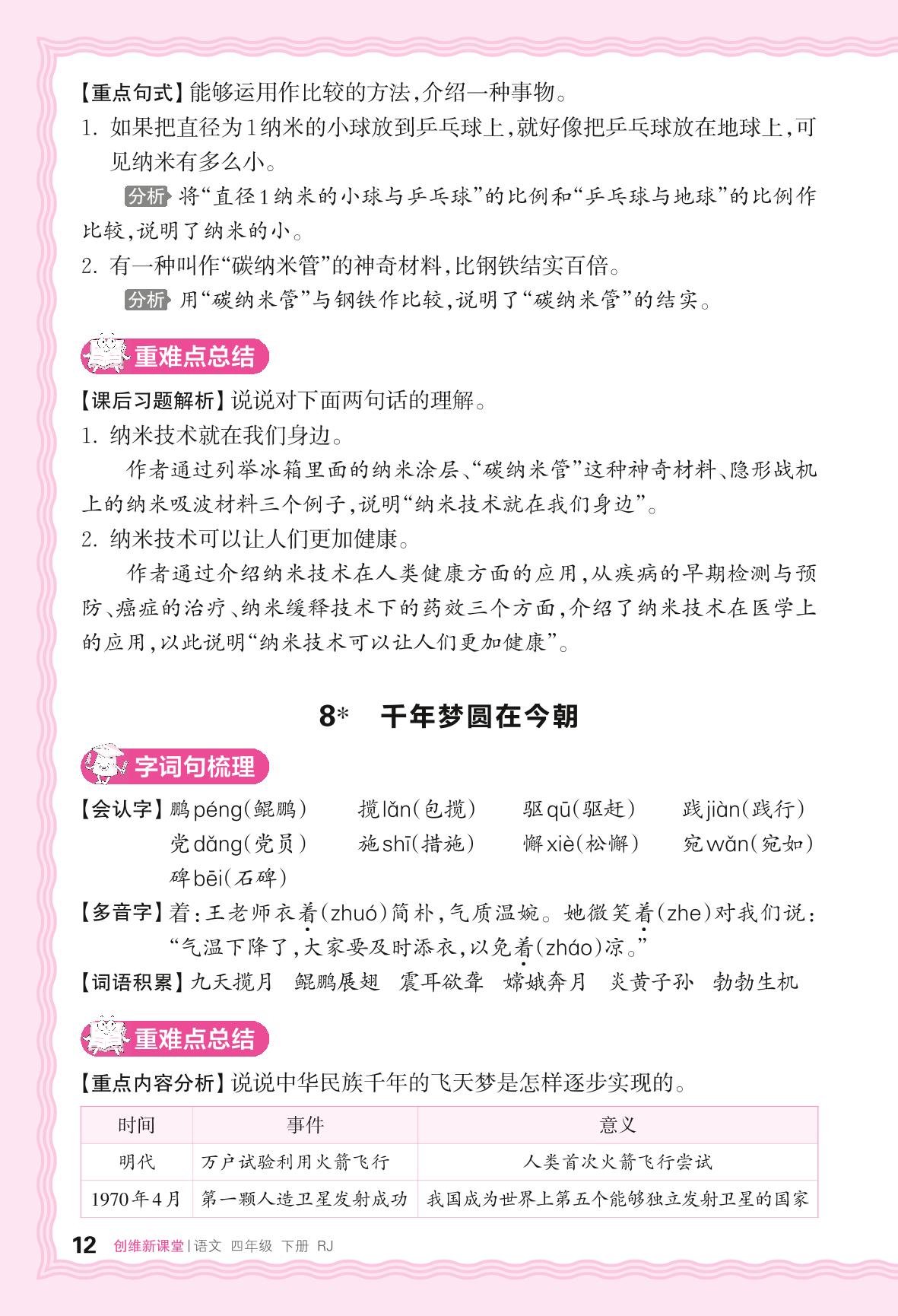 2024春下册四年级语文人教版 助学手册 第二单元——8. 千年梦圆在今朝