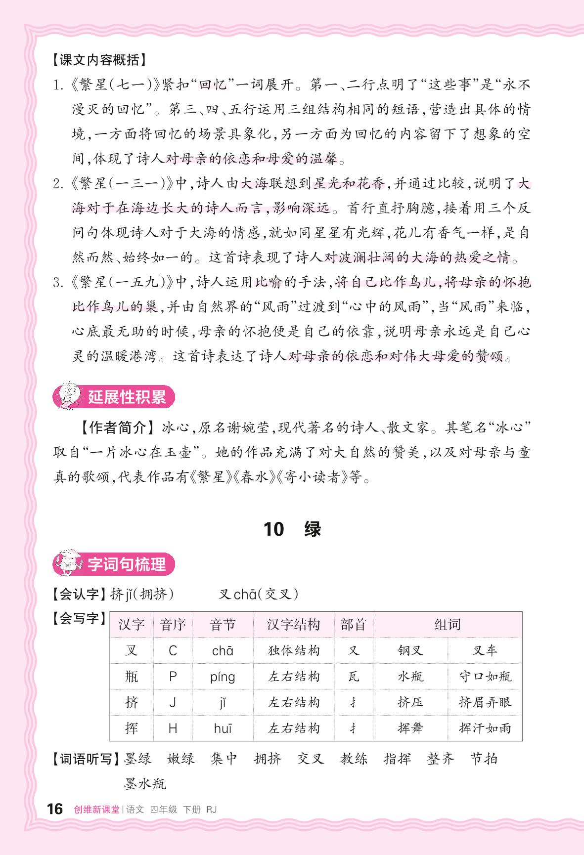 2024春下册四年级语文人教版 助学手册 第三单元——10. 绿