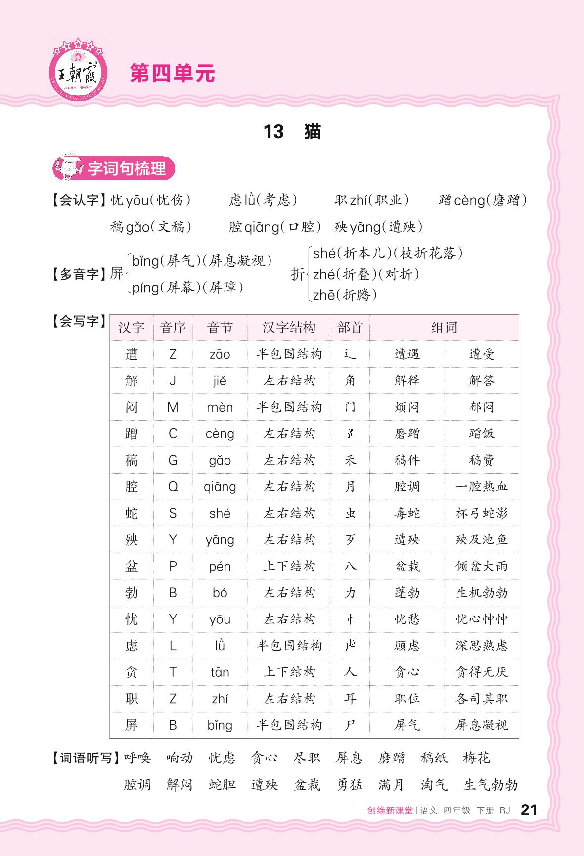 2024春下册四年级语文人教版 助学手册 第四单元——13. 猫