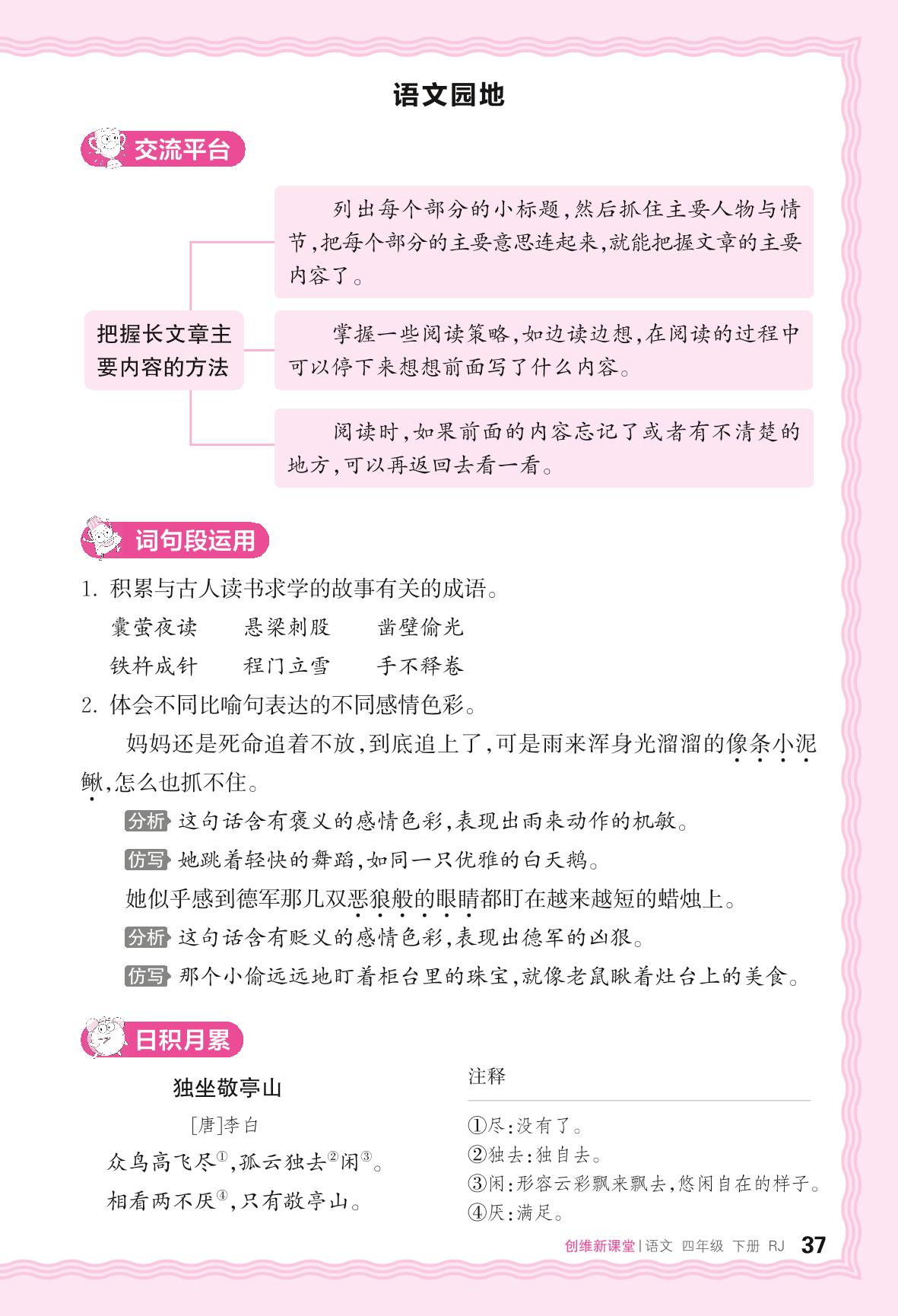 2024春下册四年级语文人教版 助学手册 第六单元——语文园地