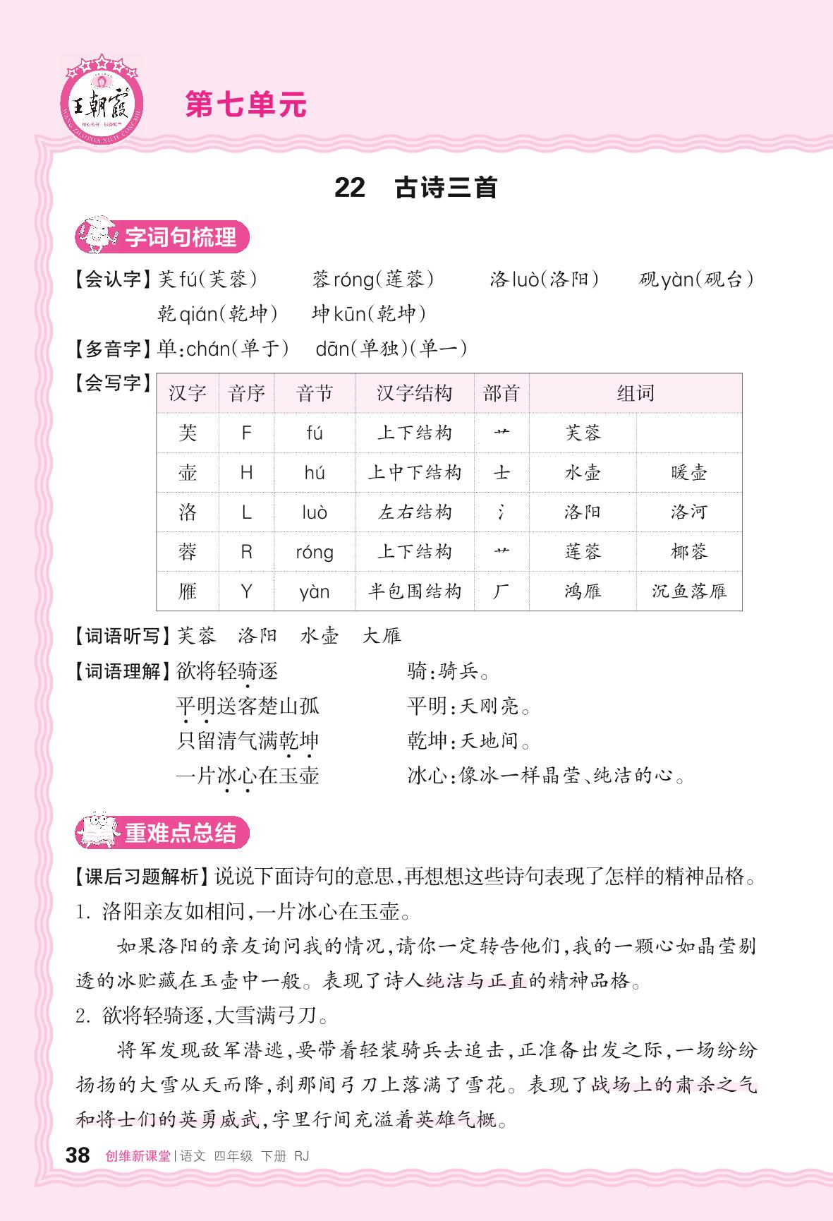 2024春下册四年级语文人教版 助学手册 第七单元——22. 古诗三首