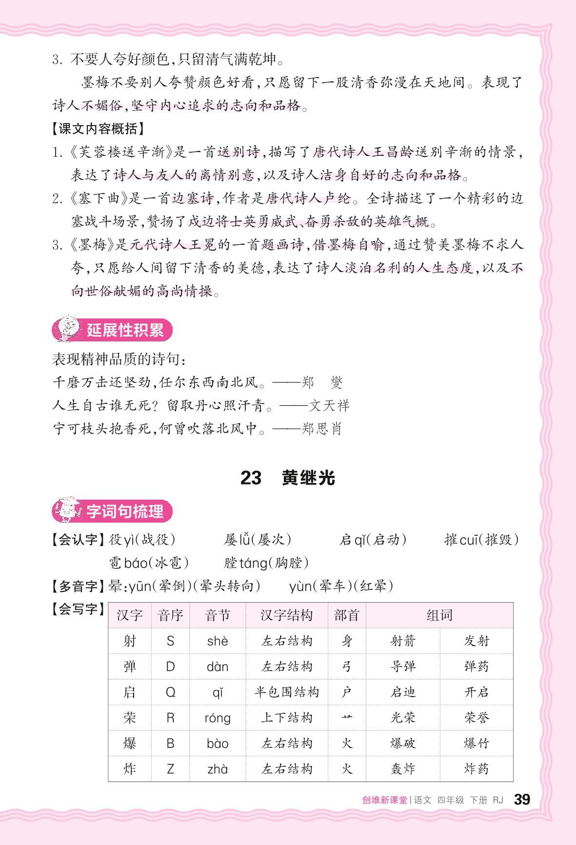 2024春下册四年级语文人教版 助学手册 第七单元——23. 黄继光