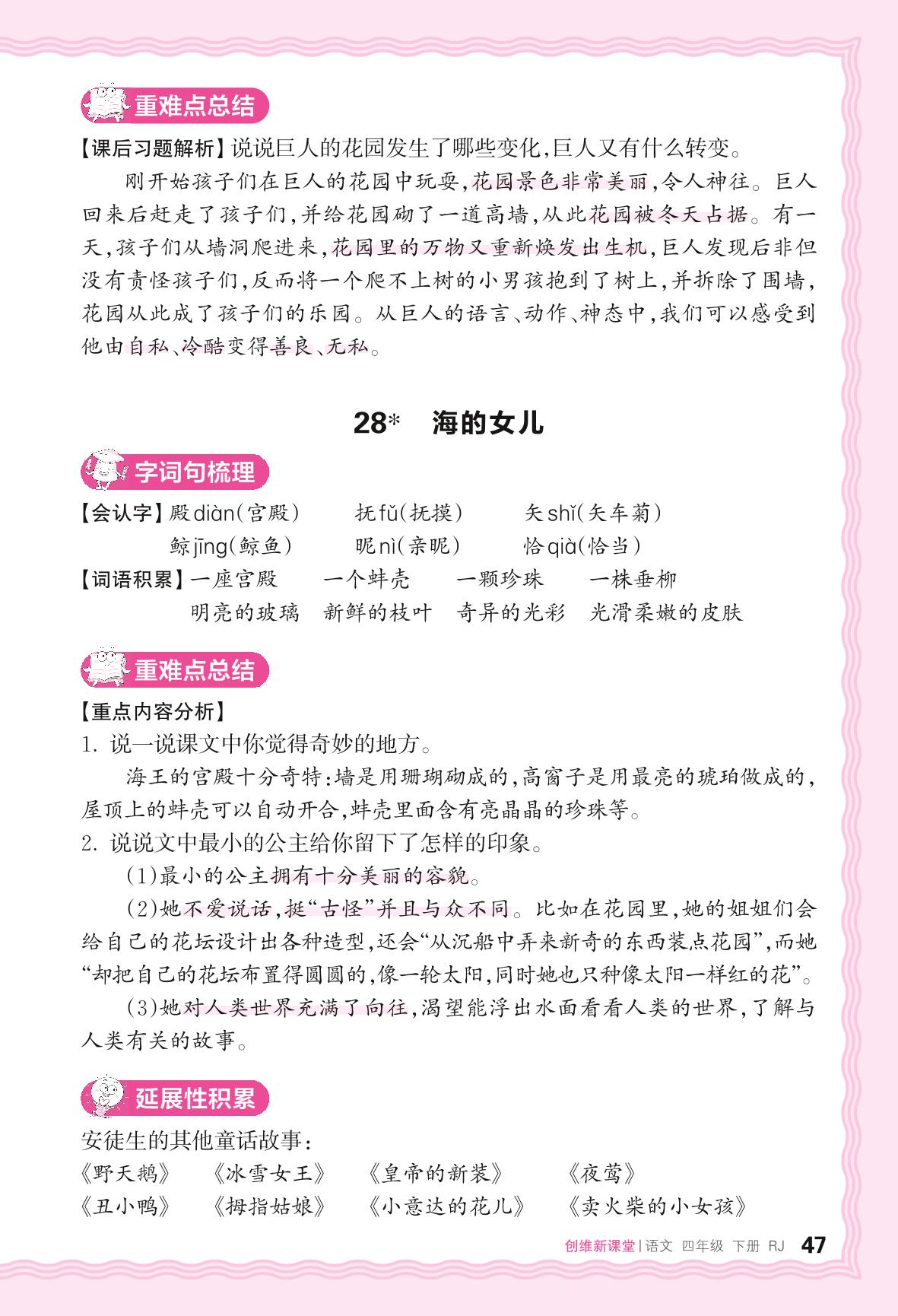 2024春下册四年级语文人教版 助学手册 第八单元——28. 海的女儿