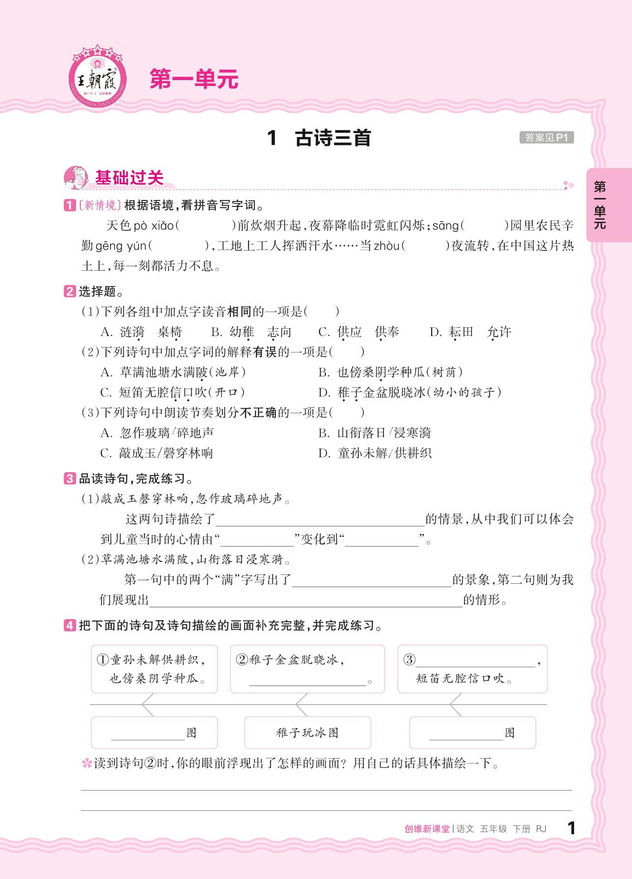 2024春下册五年级语文人教版 第一单元 童年往事——1. 古诗三首_R240119114421166