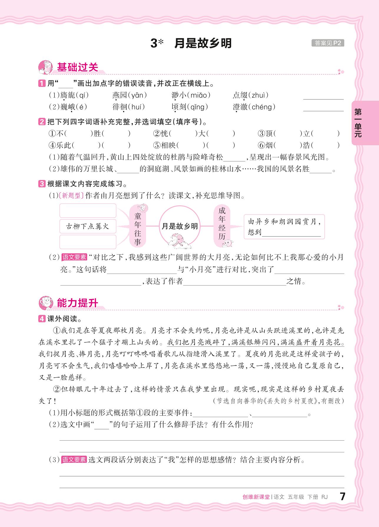 2024春下册五年级语文人教版 第一单元 童年往事——3. 月是故乡明_R240119114422730