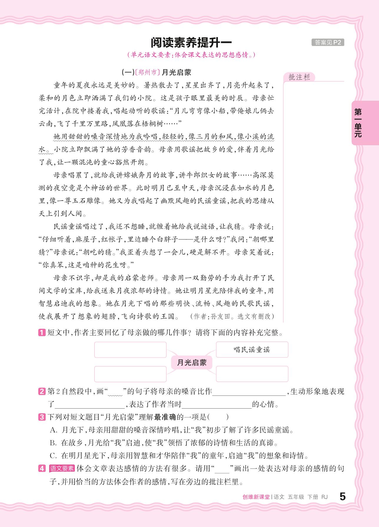 2024春下册五年级语文人教版 第一单元 童年往事——阅读素养提升一