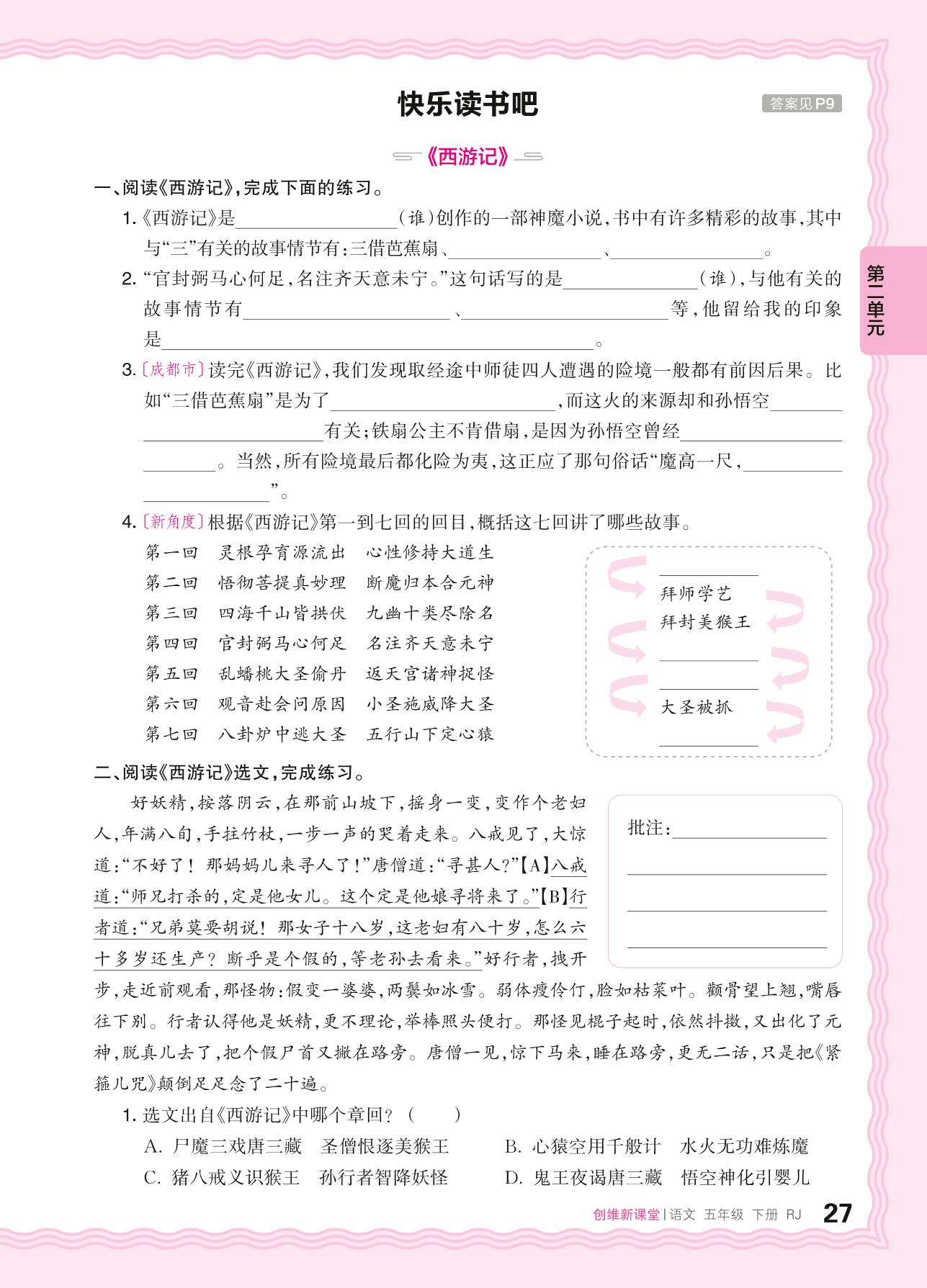 2024春下册五年级语文人教版 第二单元 走进中国古典名著——快乐读书吧