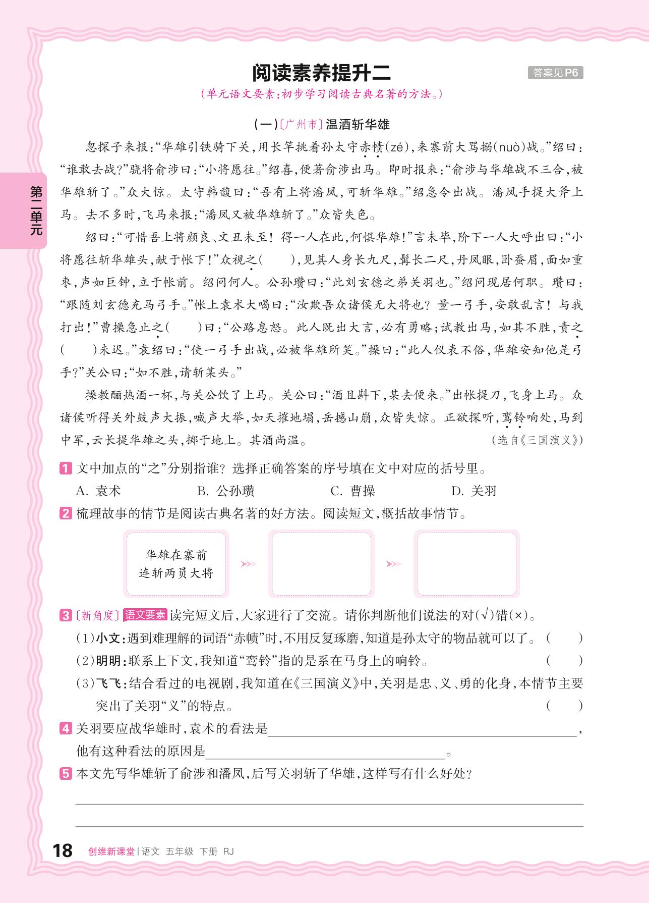 2024春下册五年级语文人教版 第二单元 走进中国古典名著——阅读素养提升二