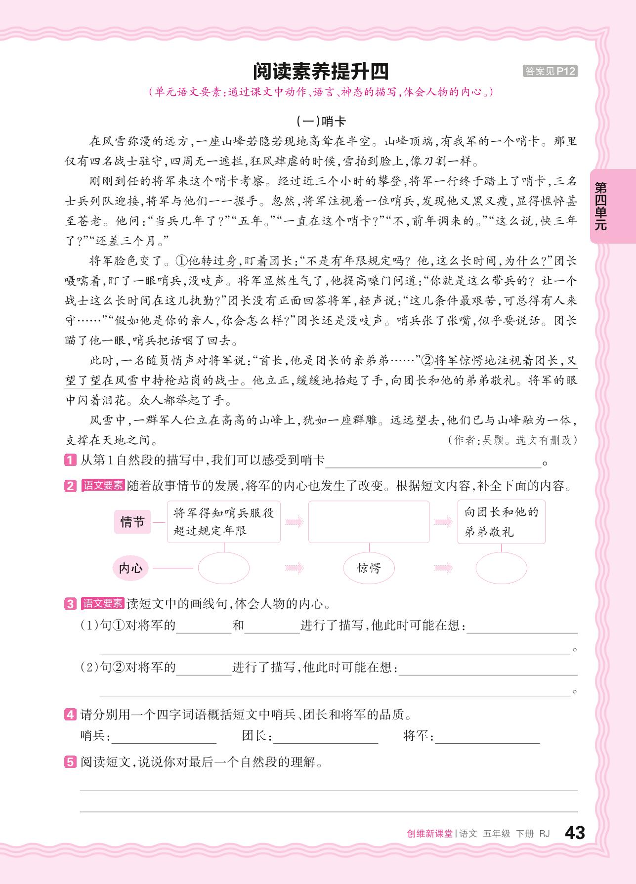 2024春下册五年级语文人教版 第四单元 责任——阅读素养提升四