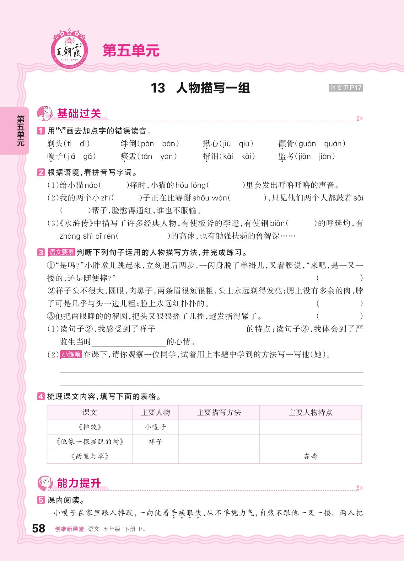 2024春下册五年级语文人教版 第五单元 学习描写方法——13. 人物描写一组