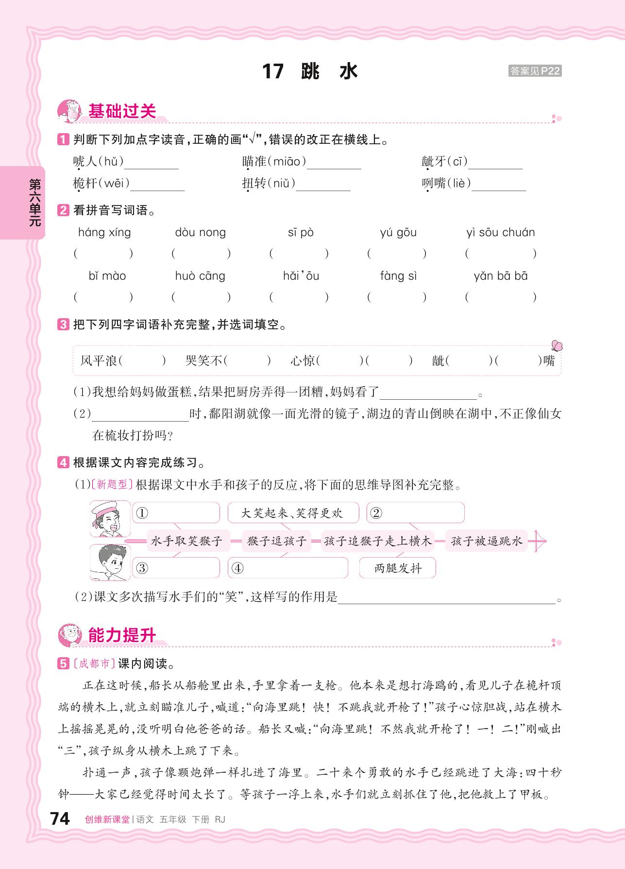 2024春下册五年级语文人教版 第六单元 思维的火花——17. 跳水_R240119114435762