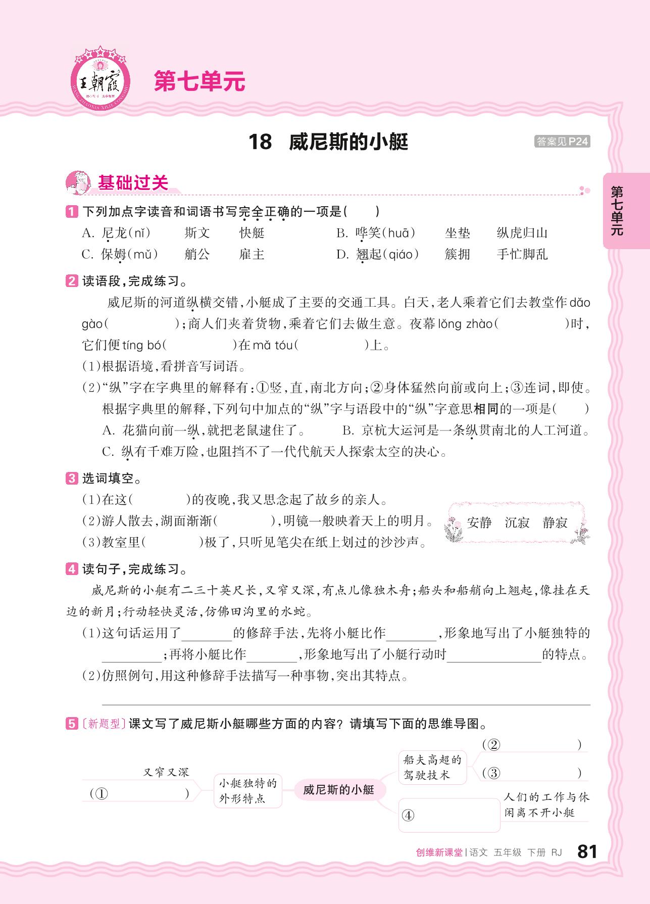 2024春下册五年级语文人教版 第七单元 世界各地——18. 威尼斯的小艇_R240119114436483
