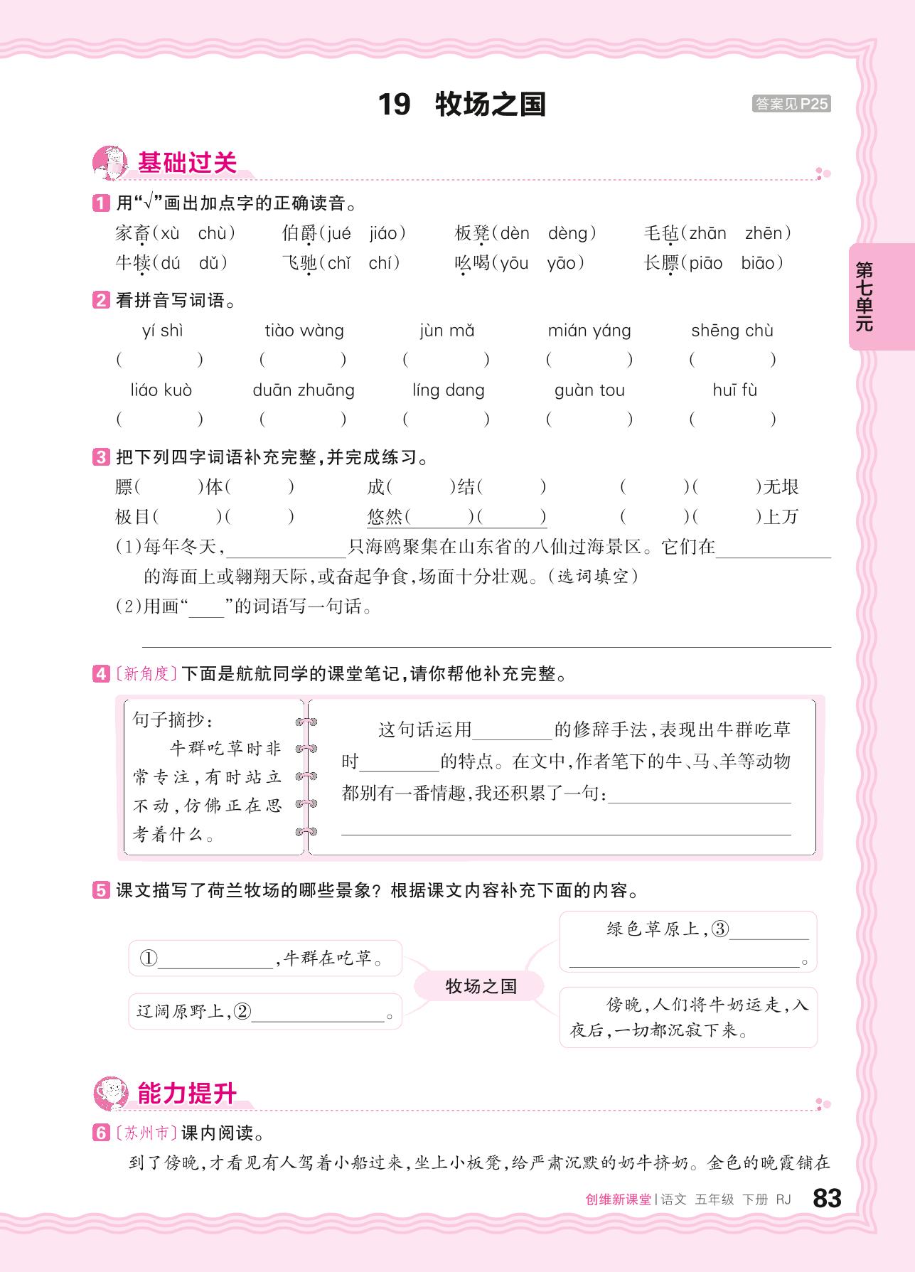 2024春下册五年级语文人教版 第七单元 世界各地——19. 牧场之国_R240119114437837