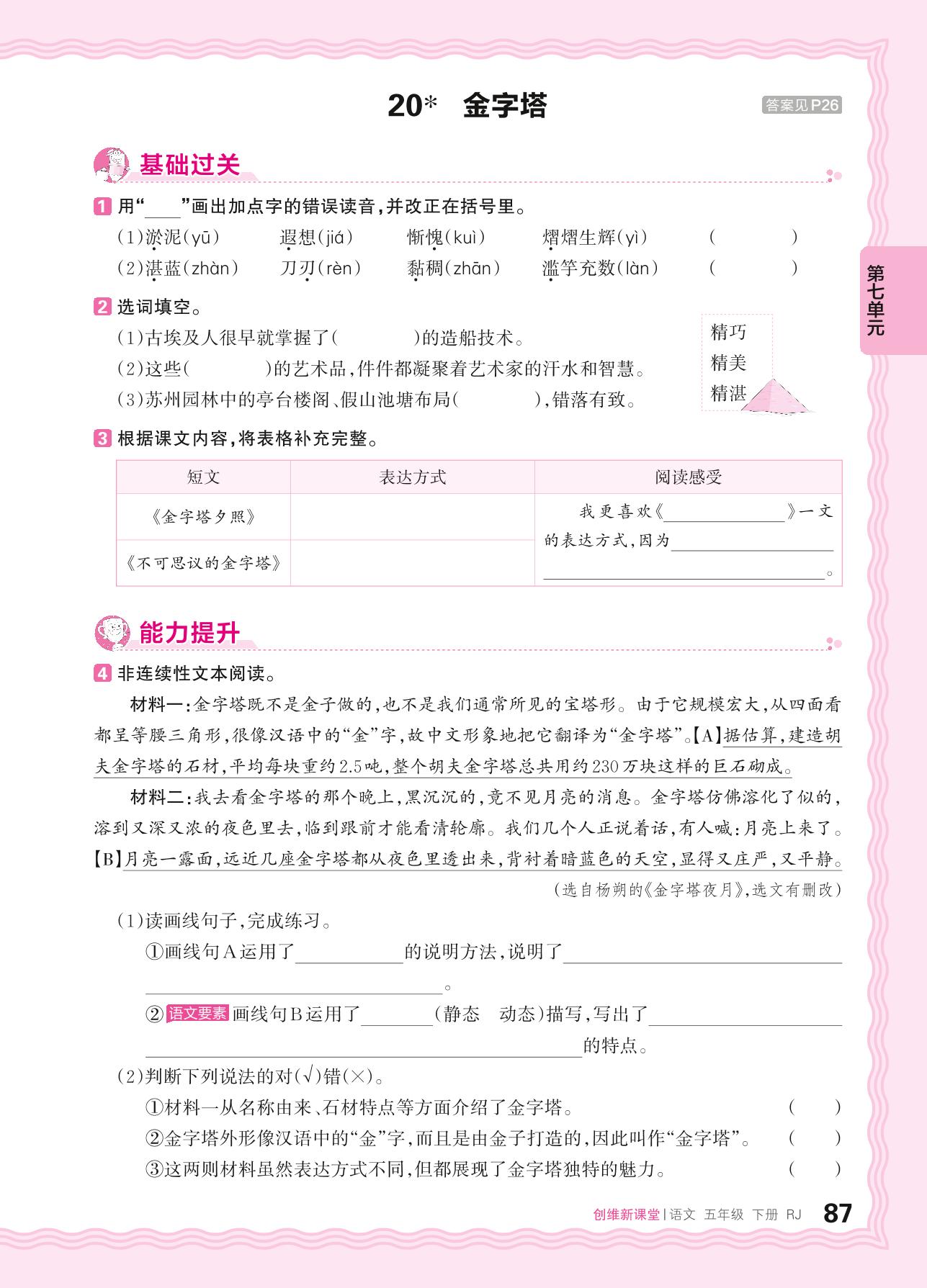 2024春下册五年级语文人教版 第七单元 世界各地——20. 金字塔_R240119114437917