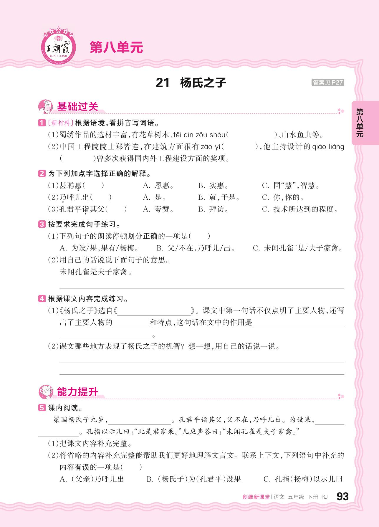 2024春下册五年级语文人教版 第八单元 风趣与幽默——21. 杨氏之子_R240119114439476