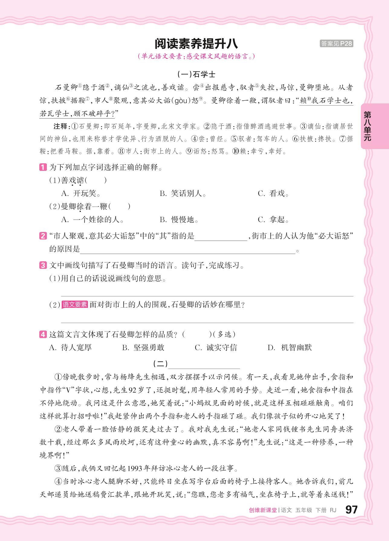 2024春下册五年级语文人教版 第八单元 风趣与幽默——阅读素养提升八
