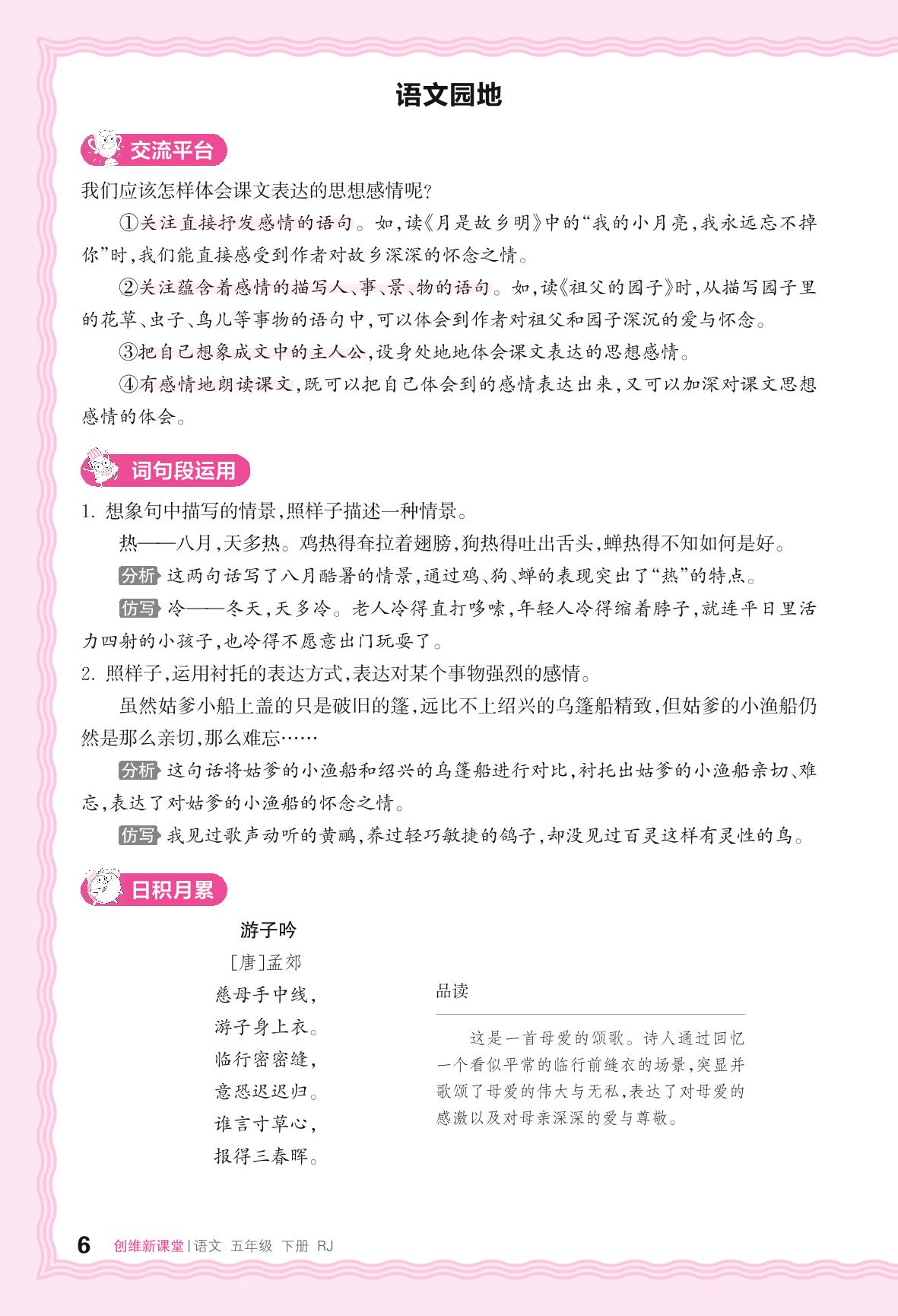 2024春下册五年级语文人教版 助学手册 第一单元 ——语文园地