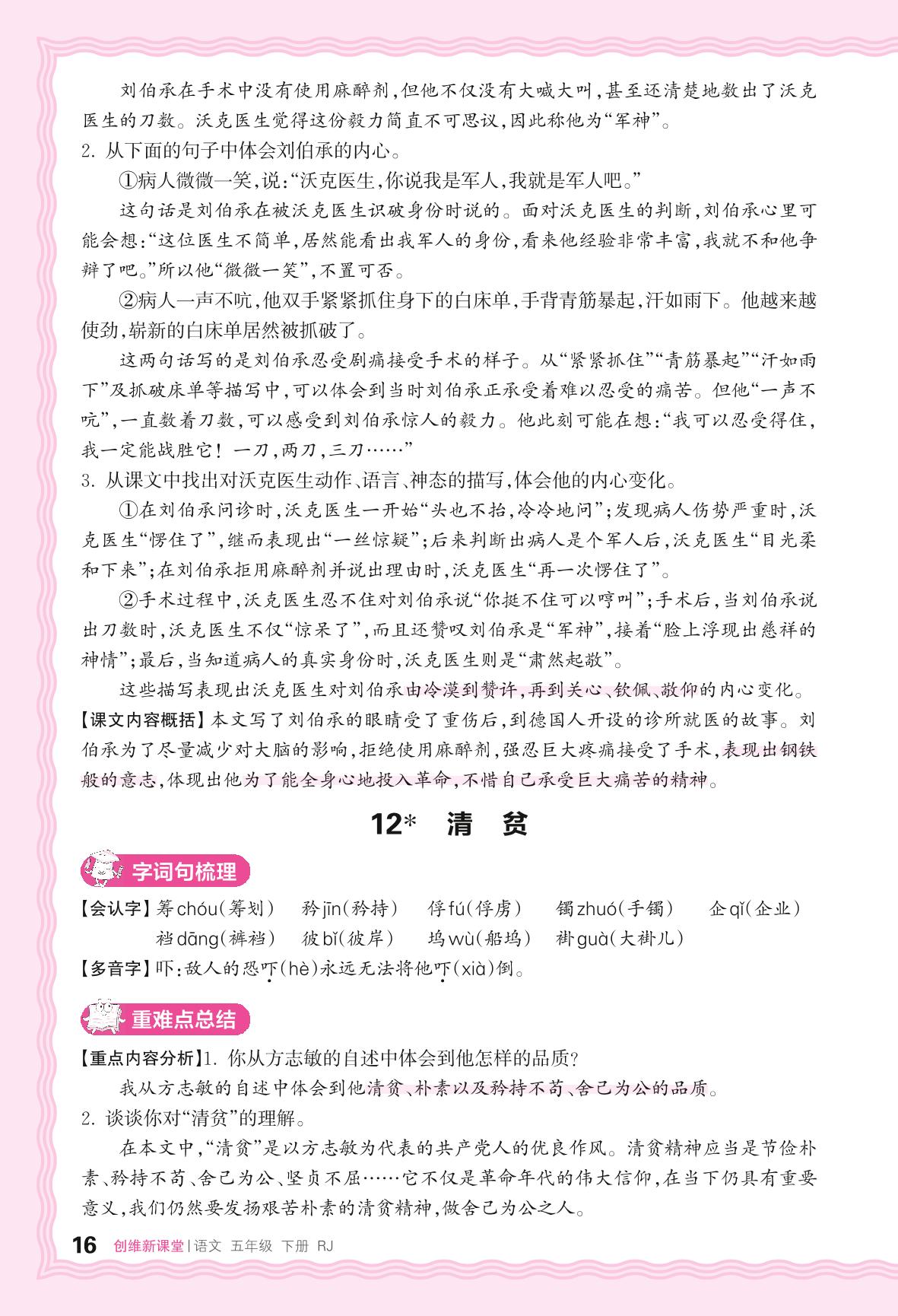 2024春下册五年级语文人教版 助学手册 第四单元 ——12. 清贫