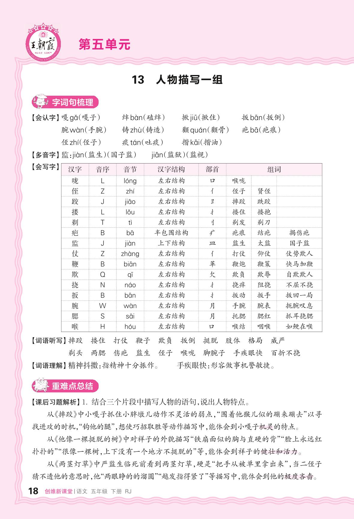 2024春下册五年级语文人教版 助学手册 第五单元 ——13. 人物描写一组
