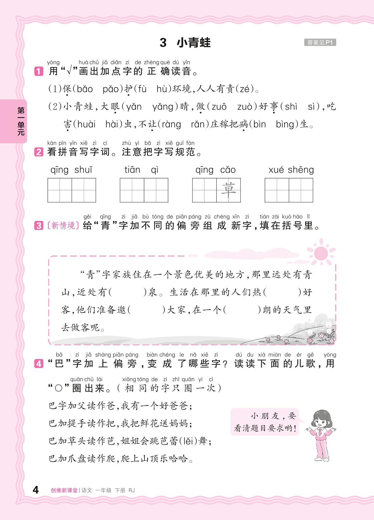 2024春下册一年级语文人教版 第一单元 识字——3. 小青蛙_R240119140112270
