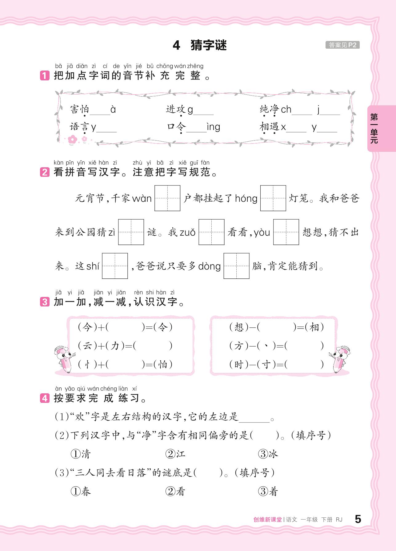 2024春下册一年级语文人教版 第一单元 识字——4. 猜字谜_R240119140113291