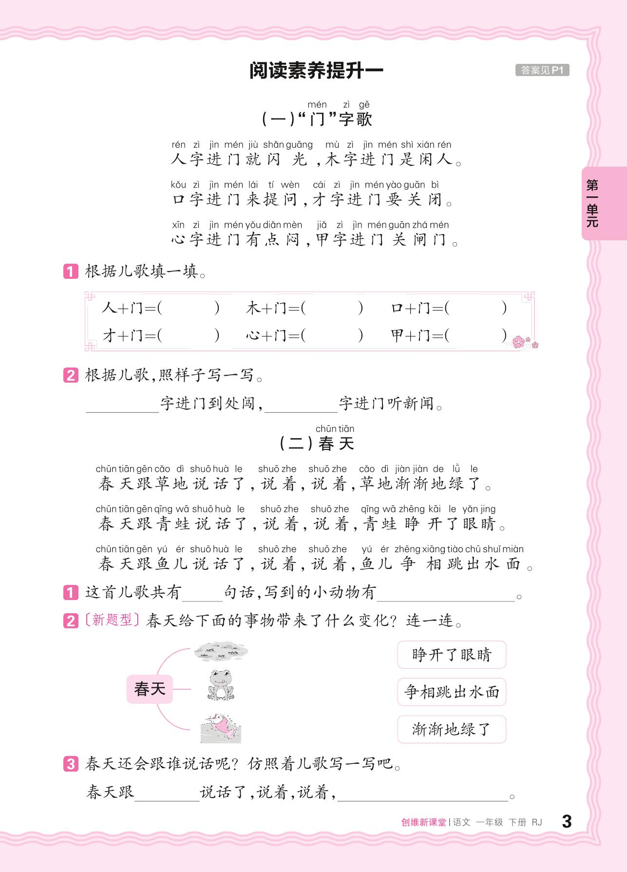 2024春下册一年级语文人教版 第一单元 识字——阅读素养提升一