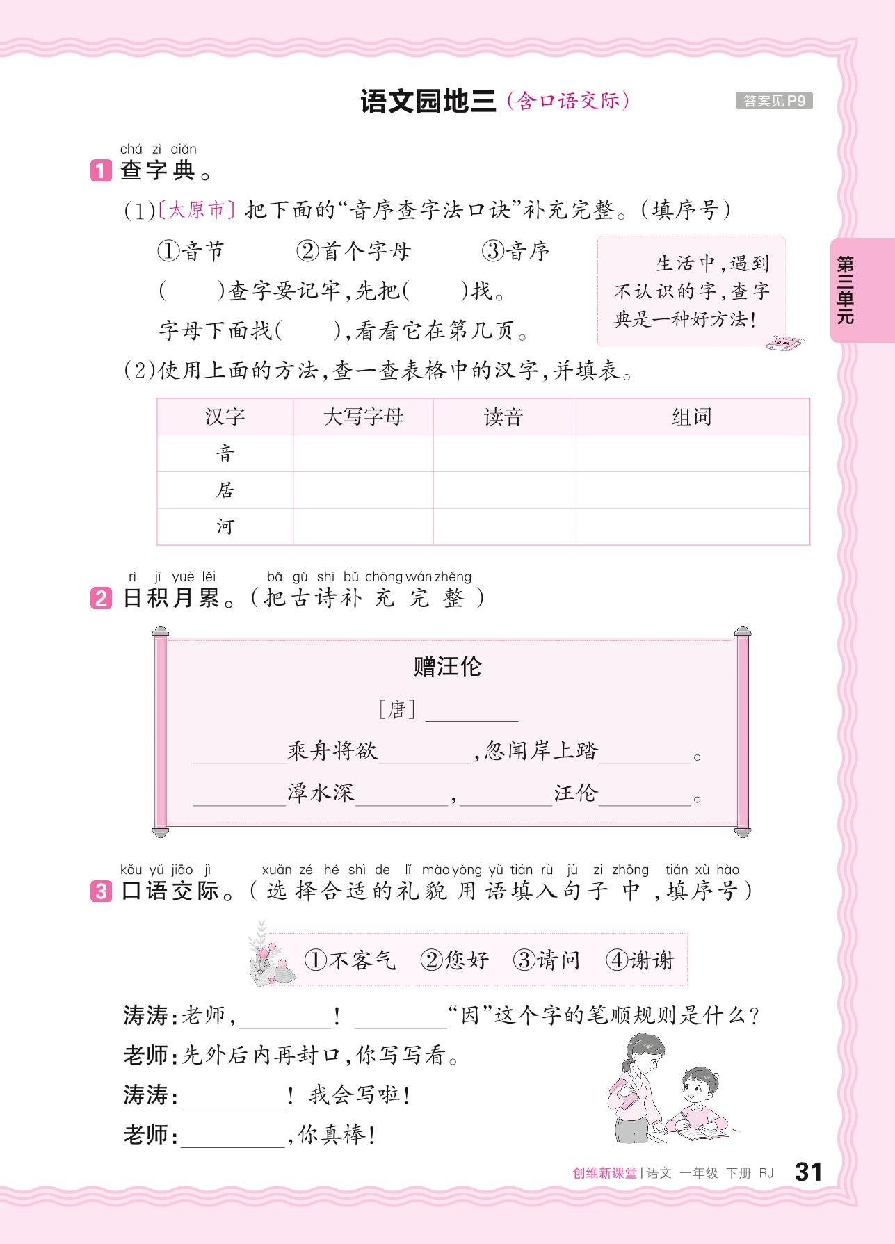 2024春下册一年级语文人教版 第三单元 伙伴——语文园地三(含口语交际)_R240119140119447