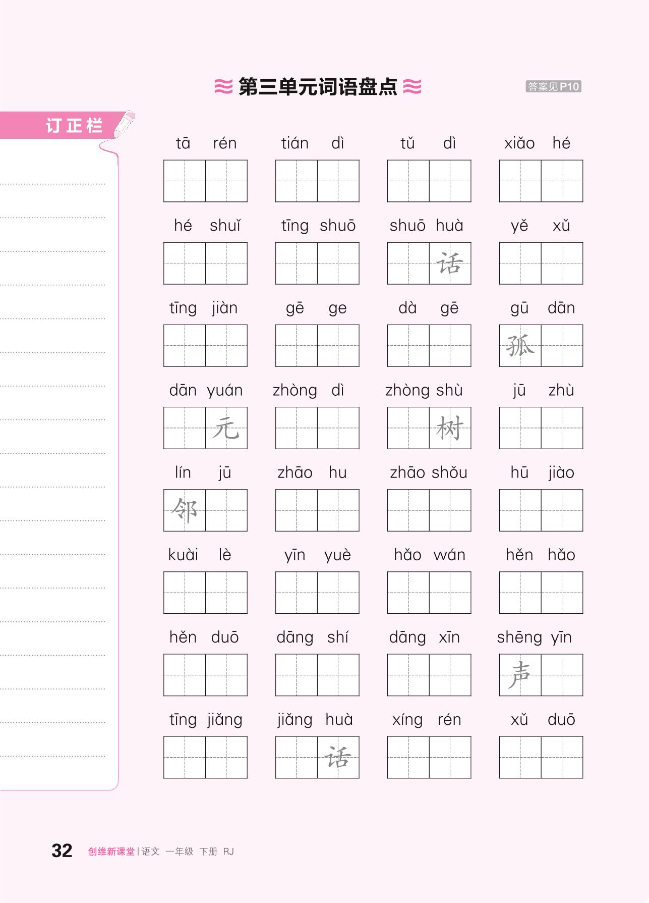 2024春下册一年级语文人教版 第三单元词语盘点