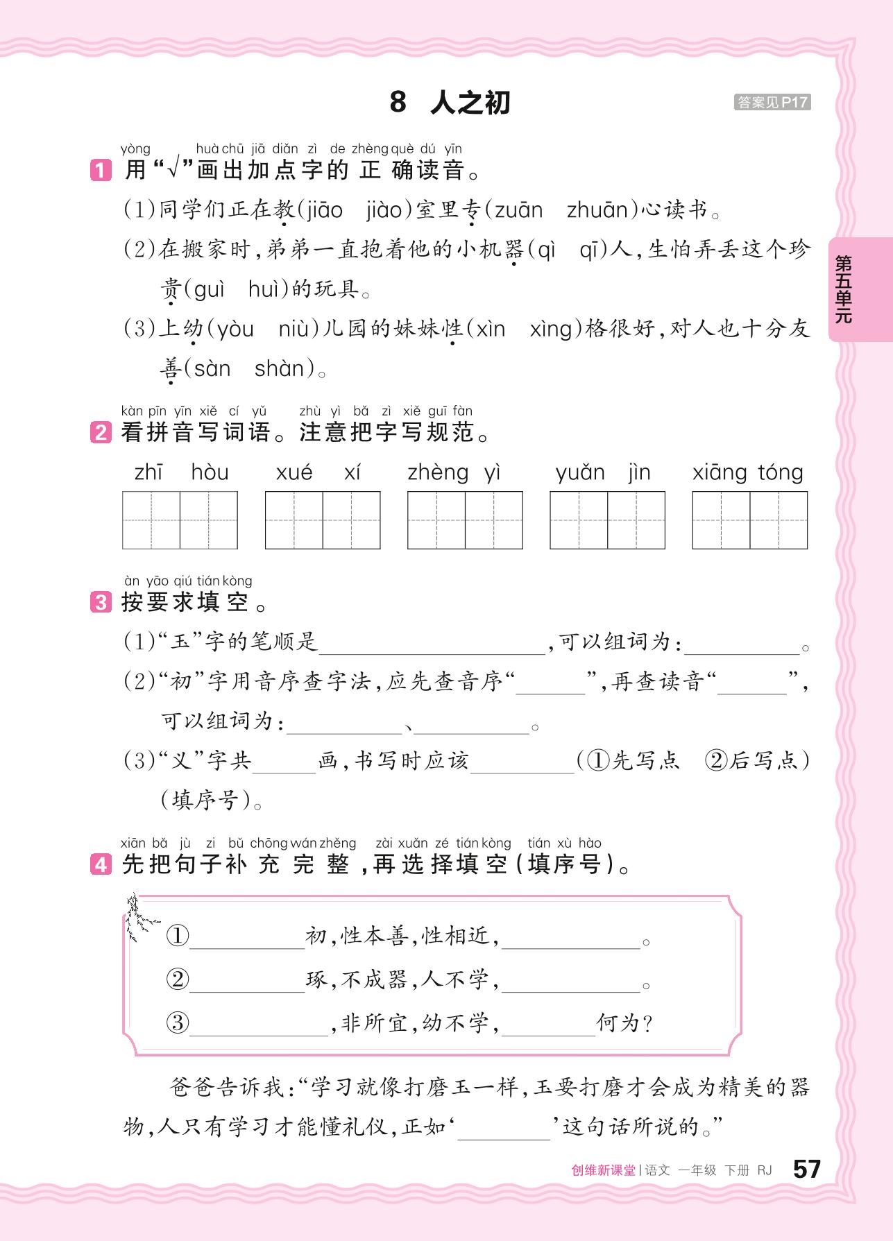 2024春下册一年级语文人教版 第五单元 识字——8. 人之初_R240119140124237