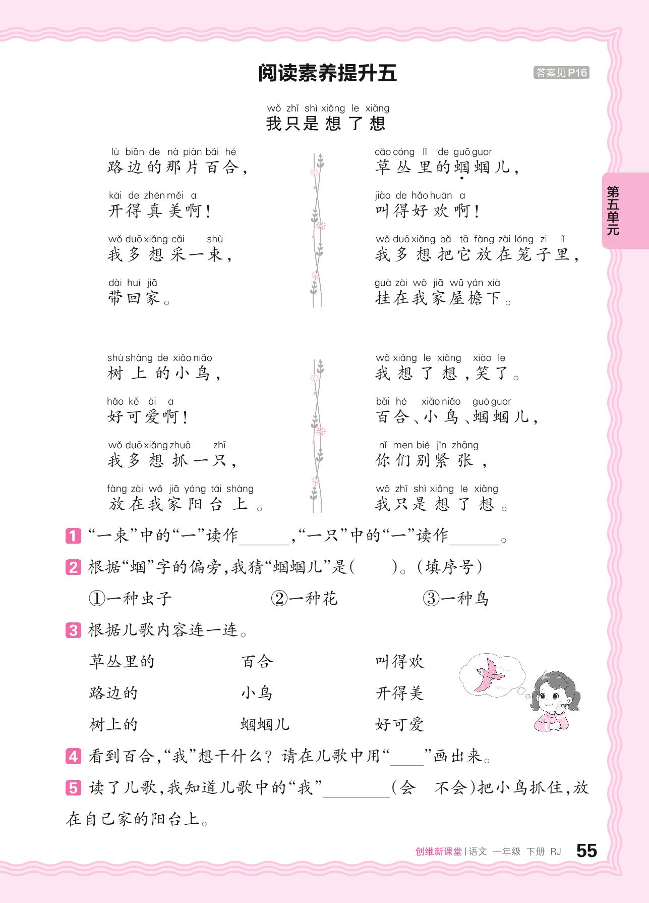 2024春下册一年级语文人教版 第五单元 识字——阅读素养提升五