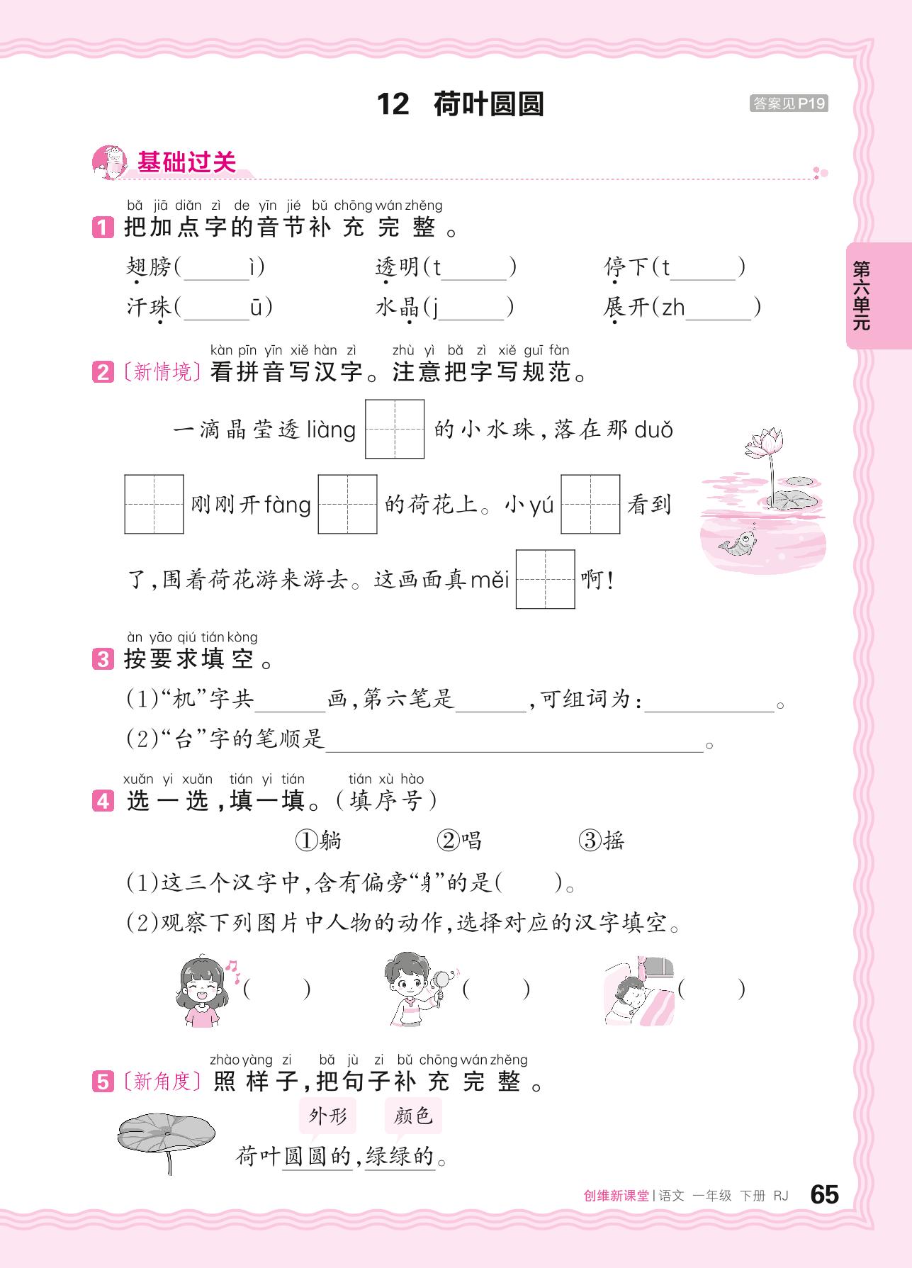 2024春下册一年级语文人教版 第六单元 夏天——12. 荷叶圆圆_R240119140127309